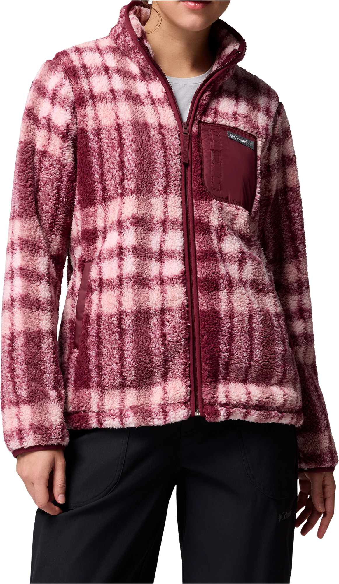 Columbia West Bend II Sherpa Jacke mit Print für Frauen Die Columbia West Bend II Sherpa Jacke vereint kuscheligen Komfort mit stylischem Design. Das weiche Fleece hält dich angenehm warm und sorgt für ein gemütliches Tragegefühl im Alltag. Durch den modernen Allover-Print erhält die Jacke einen individuellen Look, der perfekt zu urbanen Aktivitäten oder entspannten Spaziergängen passt. Dank figurnaher Schnittführung genießt du optimale Bewegungsfreiheit und eine schmeichelnde Silhouette. In den praktischen Hand- und Brusttaschen kannst du deine wichtigsten Essentials sicher verstauen. Details: * Weiches Fleece für Wärme und hohen Tragekomfort * Stylischer Allover-Print für einen individuellen Look * Figurnahe Schnittführung für Bewegungsfreiheit und eine günstige Silhouette * Praktische Hand- und Brusttaschen für unterwegs * Kuschelig weich und angenehm zu tragen * Ideal für Alltag, Gehen und urbane Aktivitäten Technische Daten: * Material: 100 % recyceltes Polyester, Fleece: 100 % Polyester * Passform: Figurnah * Taschen: Hand- und Brusttaschen * Hintere Länge in der Mitte: 66 cm * Einsatzbereiche: Gehen, Alltag, urbane Aktivitäten Lieferumfang: * 1 x Columbia West Bend II Sherpa Jacke mit Print für Frauen Art Jacken: Fleecejacke, Geschlecht: Damen, Material: 100% Polyester (recycelt), Farbe: rich wine herringplaid, Größe: M