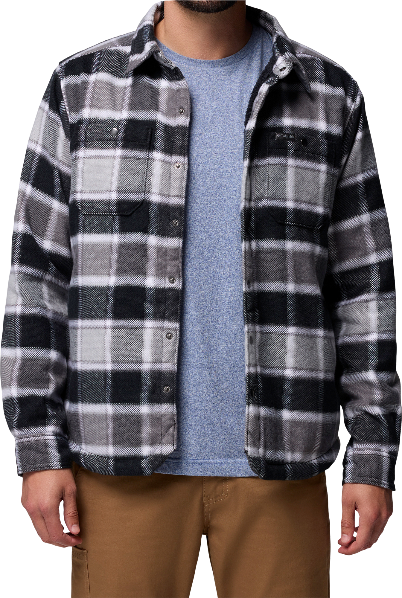 Windward II Hemdjacke für Herren mit Sherpa-Futter Mit der Windward II Hemdjacke genießt du die Optik eines klassischen Hemds und die Wärme einer gefütterten Jacke. Das weiche Sherpa-Futter sorgt für hohen Tragekomfort bei kühlen Stadtspaziergängen. Praktische Details wie Druckknöpfe, Eingrifftaschen und ein verlängerter Rücken machen sie ideal für den Alltag in der Übergangszeit. Details: * Klassisches Hemddesign mit warmem Sherpa-Futter * Bequemer Schnitt für städtische Aktivitäten * Eingrifftaschen für kleine Gegenstände * Brusttaschen mit Druckknopfverschluss * Verlängerter Rücken (Droptail-Saum) für besseren Schutz Technische Daten: * Rückenlänge: 77,5 cm * Obermaterial: 100 % Polyester * Futter: 100 % Polyesterfleece (Polyestervlies) Lieferumfang: * 1 Herren Hemdjacke Windward II mit Sherpa-Futter Art Jacken: Outdoorjacke, Geschlecht: Herren, Material: 100 % Polyester, Farbe: Black Trapper Windowpane, Größe: L
