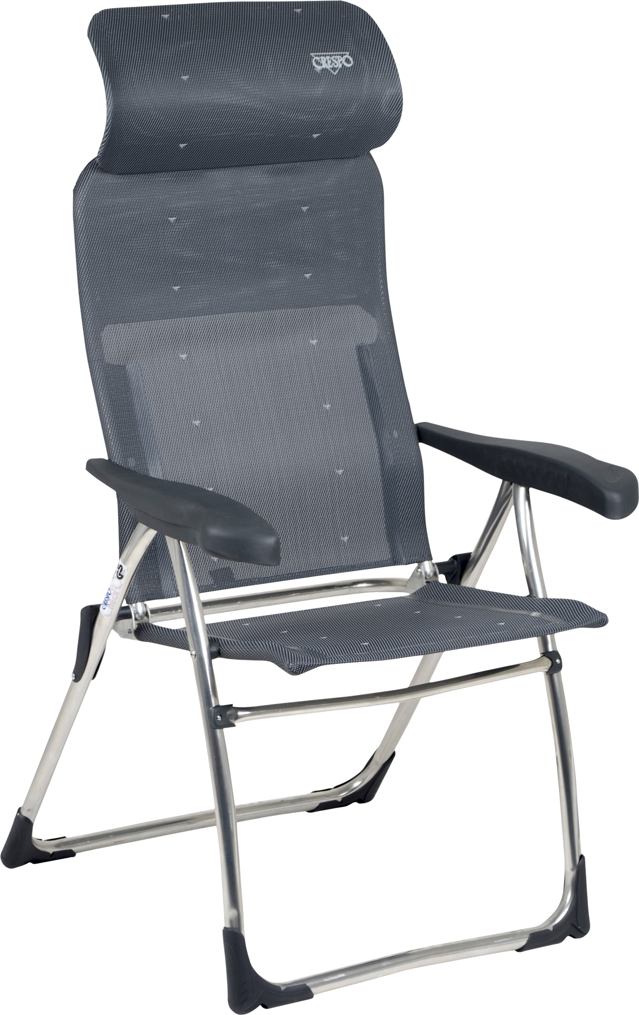 Leichter, sehr kompakter, verstellbarer Klappstuhl. Dieser Stuhl bietet dank der 7-fach verstellbaren Rückenlehne und der stufenlos verstellbaren Kopfstütze maximalen Komfort (Länge der Rückenlehne: 65-83 cm). Die Rückenlehne, der Sitz und die Armlehnen sind ergonomisch geformt. Der Stuhl hat einen U-Rahmen mit Stabilisatoren und extra dicken Rohren für zusätzliche Festigkeit und Stabilität. Dank der voll versenkbaren Kopfstütze kann der Stuhl sehr kompakt untergebracht werden. Bis zu 50 % weniger Stauvolumen im Vergleich zu anderen Campingstühlen. Crespo stellt diesen Campingstuhl unter Beachtung höchster Qualitätsstandards direkt in Spanien her und sorgt so für ein langlebiges und verlässliches Produkt. Details * in 7 Stufen verstellbare Rückenlehne * sehr flach klappbar, bis zu 50 % weniger Packvolumen * ergonomisch geformte Rückenlehne, Sitzfläche und Armlehnen * bis zu 50% weniger Stauvolumen im Vergleich zu anderen Campingstühlen * Crespo Classic Bezug: Sehr leichtgewichtige & hochwertige * Multi-Fibre: Langlebig, hohe Luftdurchlässigkeit, wetterbeständig Maße offen (BxHxT): 64 x 102 x 60 cm, Packmaß (LxBxH): 7,5 x 94 x 64 cm, Sitzfläche (BxT): 47 x 38 cm, Sitzhöhe: 45 cm, Breite Sitz-/Rückenlehne: 48 cm, Ergonomische Rückenlehne: Ja, Höhe Rückenlehne: 85 cm, Belastbar bis: 110 kg, Farbe: dunkelgrau, Gewicht: 3,9 kg, Material Bezug: Multifiber-Stoff (60% Polyvinylchlorid, 40 % Polyester), Material Gestell: Aluminium, Mit Tragetasche: Nein, Rückenlehne: 7-fach verstellbar, Sitzhöhe: 45 cm