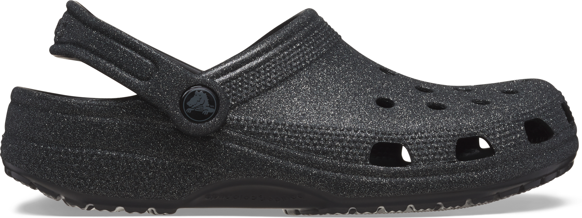 Classic Glitter Clog – Funkelnder Komfort für jeden Tag Der Classic Glitter Clog bringt den ikonischen Crocs Komfort in einer glitzernden Version zurück. Der leichte Allround-Schuh bietet Dir ein angenehm gepolstertes Tragegefühl und begleitet Dich bequem durch den Alltag. Belüftungslöcher sorgen für Atmungsaktivität und lassen Wasser sowie Schmutz schnell abfließen. Dank des kippbaren Fersenriemens sitzt der Clog sicher am Fuß und lässt sich mit Jibbitz Ansteckern individuell gestalten. Details: * Unglaublich leicht und angenehm zu tragen * Belüftungslöcher für Atmungsaktivität sowie Wasser- und Schmutzabfluss * Einfach zu reinigen und schnelltrocknend * Kippbarer Fersenriemen für sicheren Halt * Personalisierbar mit Jibbitz Ansteckern * Iconic Crocs Comfort für leichtes, flexibles Tragegefühl und 360°-Komfort Technische Daten: * Produktart: Clog Lieferumfang: * 1 Paar Classic Glitter Clog Art Schuhe: Sandale, Geschlecht: Unisex, Farbe: black glitter, Größe: 37-38