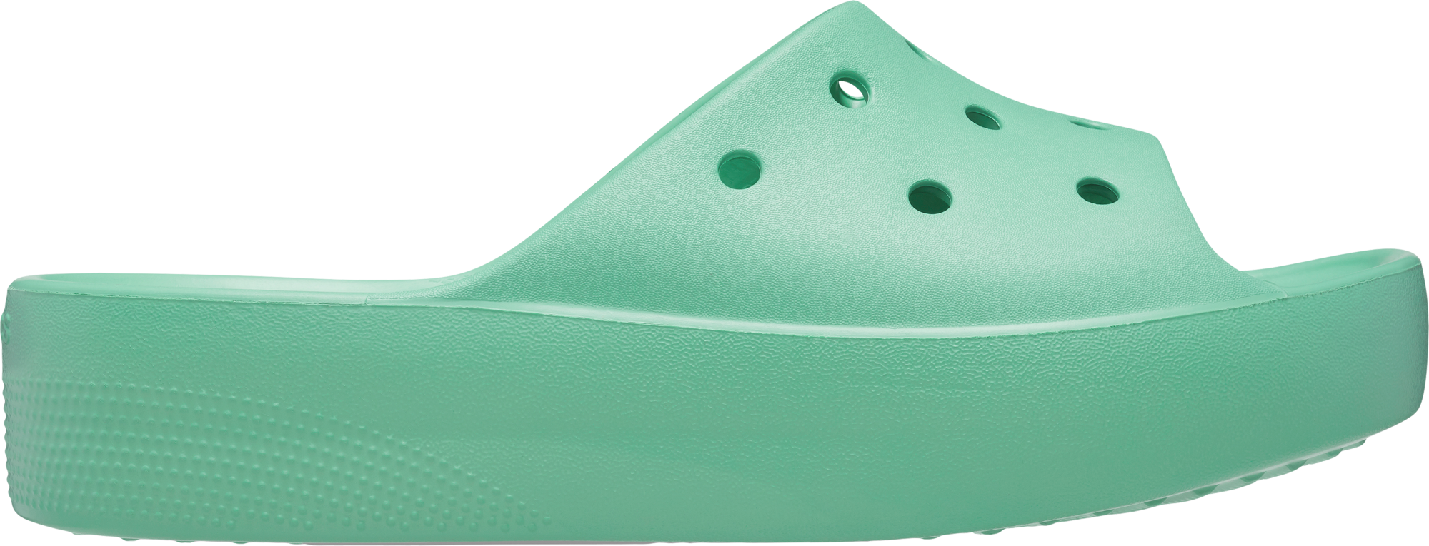 Der Classic Platform Slide steht für elegante Schlichtheit mit stylishen Akzenten für sie. Das lässige, geradlinige Design zeigt sich leicht erhöht und vielseitig. Egal zu welchem Anlass, der Schuh lässt sich mühelos stylen. Details * erhöhter 31-mm-Absatz, gemessen vom Boden bis zur Fersenkante * gleiches Obermaterial wie beim Classic Slide * Iconic Crocs Comfort: Leicht. Flexibel. 360°-Komfort. Art Schuhe: Sandale, Geschlecht: Damen, Material: Synthetik, Farbe: jade stone, Größe: 37-38