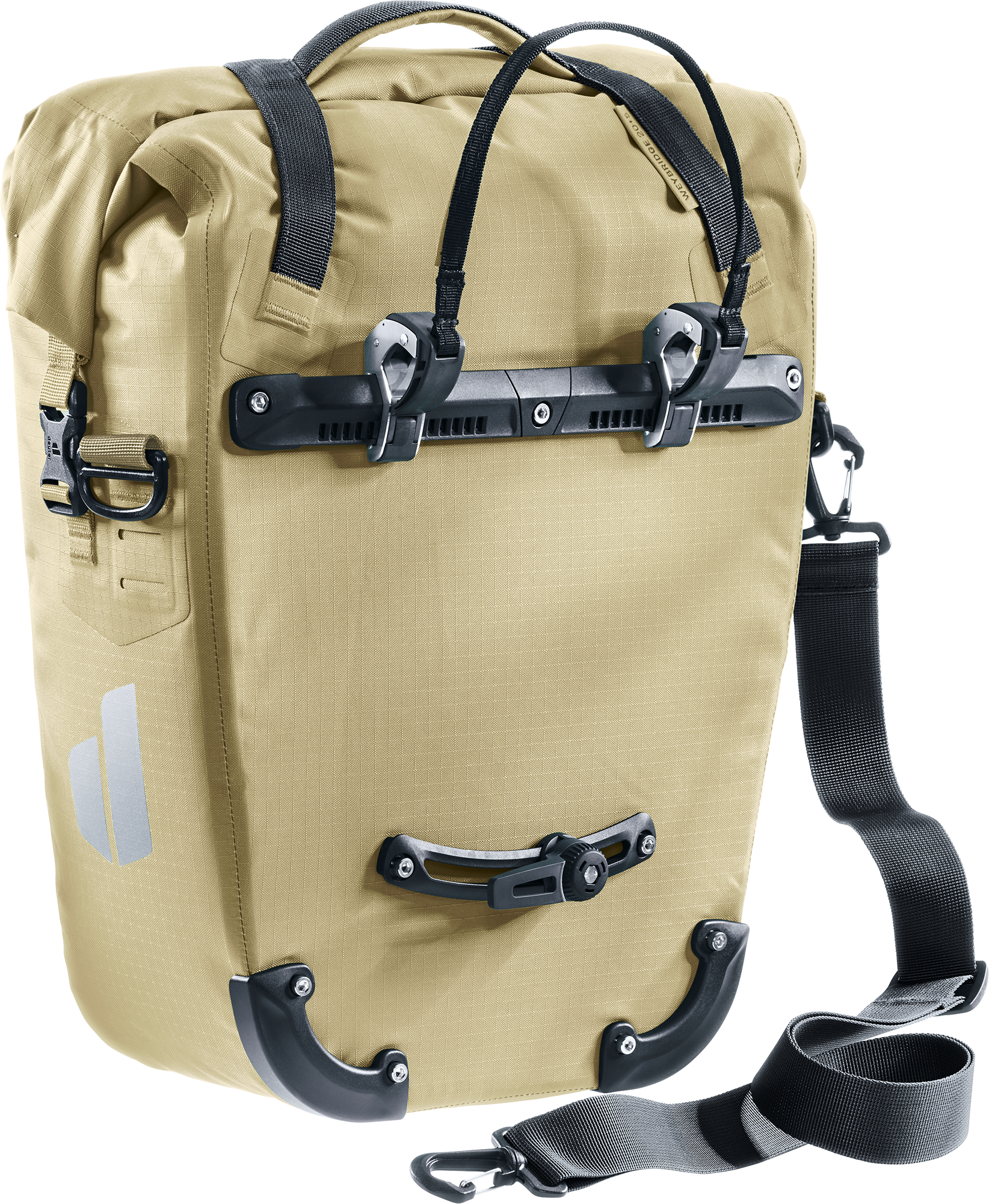 Die wasserdichte Fahrradtasche bewahrt Reisegepäck sicher vor dem Eindringen der Nässe durch Regen oder Spritzwasser. Dank des 2-Wege-Rolltopverschlusses kann das Volumen um zusätzliche 5 Liter erweitert werden. Die neu entwickelte BagFix-Halterung sorgt für maximale Bewegungsfreiheit, da die Last zu 100 % auf dem Hinterrad und nicht auf dem Rücken des Bikers liegt. Die Tasche kann mit nur einem Handgriff vom Gepäckträger abgenommen und als Schultertasche verwendet werden. So sind ihrem Einsatz kaum Grenzen gesetzt. Details * Gewicht: 920 g * Volumen: 20 Liter * Maße (H x B x T): 40 x 34 x 19 cm * Material: 420D Polyamid Tomcoat * Bagfix-Halterung * Verstellbarer Tragegriff-Verschluss * Abnehmbarer Schultergurt * Volumenerweiterung durch Roll-Top um 5 Liter * 2-Wege-Roll-Top Verschluss * Innenfach zur sicheren Unterbringung von Wertgegenständen * Organisationseinheit * Reflektoren für bessere Sichtbarkeit * Kantenschutz am Taschenboden * Wasserdicht * Per- und polyfluorierte Chemikalien- frei (PFC-frei) Volle Bewegungsfreiheit dank Bagfix Halterung Maximale Bewegungsfreiheit bietet die neu entwickelte BagFix-Halterung. Zwei Führungsschienen und zwei Haken sorgen während der Fahrt für zuverlässigen Halt der Fahrradtasche. So liegt die Last zu 100 % auf dem Hinterrad und nicht auf dem Rücken. Im Stand kann die Tasche mit nur einem Handgriff vom Gepäckträger abgenommen und als Schultertasche verwendet werden. Trocken dank wasserdichter Eigenschaft Die wasserdichte Fahrradtasche bewahrt Einkäufe, Wechselklamotten und Arbeitsmaterialien sicher vor dem Eindringen der Nässe bei Regen oder Spritzwasser. Dank der großzügigen Taschenklappe mit Magnetverschlüssen lässt sich das Volumen des Organisationstalents um zusätzliche 10 Liter Stauraum erweitern. Praktisch dank flexibler Einsatzmöglichkeiten Flexibilität bietet die multifunktionale Tasche durch ihre unterschiedlichen Einsatzmöglichkeiten als reine Aufbewahrungstasche am Hinterrad oder als größere Schultertasche zum Umhängen. Und wenn’s mal schnell gehen soll, kann auch nur die einzippbare Organisationseinheit für Laptop, Tablet und Arbeitsunterlagen mitgenommen werden. PFC-frei Dieses Deuter Produkt ist frei von per- & polyfluorierten Chemikalien. Deuter reduziert damit die Verwendung umweltschädlicher Substanzen, die Umwelt und Gesundheit belasten. PFC wird unter anderem als Beschichtung zum Regenschutz verwendet, da sie wasser-, schmutz- und fett abweisende Eigenschaften aufweisen. Stattdessen verwendet Deuter nun gesundheitlich unbedenkliche und umweltverträgliche DWR (Durable Water Repellency) Imprägnierung. Art Rucksäcke: Tagesrucksack, Volumen erweiterbar: 5 l, Gewicht: 920 g, Material: 420D Polyamid Tomcoat, Volumen: 20 l, Farbe: beige, Maße (BxHxT): 34 x 40 x 19 cm