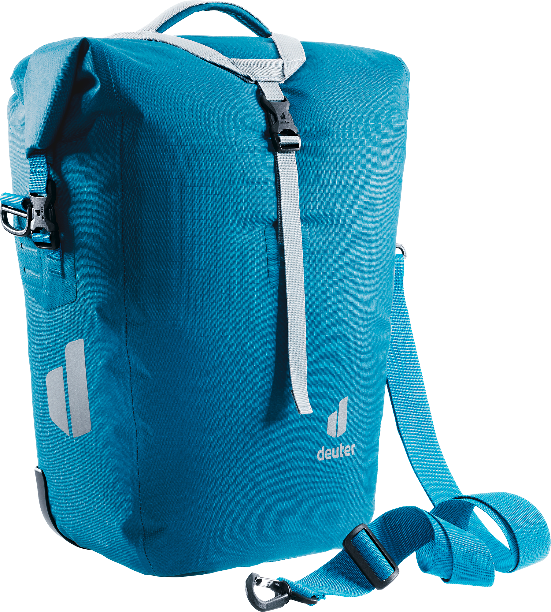 Die wasserdichte Fahrradtasche bewahrt Reisegepäck sicher vor dem Eindringen der Nässe durch Regen oder Spritzwasser. Dank des 2-Wege-Rolltopverschlusses kann das Volumen um zusätzliche 5 Liter erweitert werden. Die neu entwickelte BagFix-Halterung sorgt für maximale Bewegungsfreiheit, da die Last zu 100 % auf dem Hinterrad und nicht auf dem Rücken des Bikers liegt. Die Tasche kann mit nur einem Handgriff vom Gepäckträger abgenommen und als Schultertasche verwendet werden. So sind ihrem Einsatz kaum Grenzen gesetzt. Details * Gewicht: 920 g * Volumen: 20 Liter * Maße (H x B x T): 40 x 34 x 19 cm * Material: 420D Polyamid Tomcoat * Bagfix-Halterung * Verstellbarer Tragegriff-Verschluss * Abnehmbarer Schultergurt * Volumenerweiterung durch Roll-Top um 5 Liter * 2-Wege-Roll-Top Verschluss * Innenfach zur sicheren Unterbringung von Wertgegenständen * Organisationseinheit * Reflektoren für bessere Sichtbarkeit * Kantenschutz am Taschenboden * Wasserdicht * Per- und polyfluorierte Chemikalien- frei (PFC-frei) Volle Bewegungsfreiheit dank Bagfix Halterung Maximale Bewegungsfreiheit bietet die neu entwickelte BagFix-Halterung. Zwei Führungsschienen und zwei Haken sorgen während der Fahrt für zuverlässigen Halt der Fahrradtasche. So liegt die Last zu 100 % auf dem Hinterrad und nicht auf dem Rücken. Im Stand kann die Tasche mit nur einem Handgriff vom Gepäckträger abgenommen und als Schultertasche verwendet werden. Trocken dank wasserdichter Eigenschaft Die wasserdichte Fahrradtasche bewahrt Einkäufe, Wechselklamotten und Arbeitsmaterialien sicher vor dem Eindringen der Nässe bei Regen oder Spritzwasser. Dank der großzügigen Taschenklappe mit Magnetverschlüssen lässt sich das Volumen des Organisationstalents um zusätzliche 10 Liter Stauraum erweitern. Praktisch dank flexibler Einsatzmöglichkeiten Flexibilität bietet die multifunktionale Tasche durch ihre unterschiedlichen Einsatzmöglichkeiten als reine Aufbewahrungstasche am Hinterrad oder als größere Schultertasche zum Umhängen. Und wenn’s mal schnell gehen soll, kann auch nur die einzippbare Organisationseinheit für Laptop, Tablet und Arbeitsunterlagen mitgenommen werden. PFC-frei Dieses Deuter Produkt ist frei von per- & polyfluorierten Chemikalien. Deuter reduziert damit die Verwendung umweltschädlicher Substanzen, die Umwelt und Gesundheit belasten. PFC wird unter anderem als Beschichtung zum Regenschutz verwendet, da sie wasser-, schmutz- und fett abweisende Eigenschaften aufweisen. Stattdessen verwendet Deuter nun gesundheitlich unbedenkliche und umweltverträgliche DWR (Durable Water Repellency) Imprägnierung. Art Rucksäcke: Tagesrucksack, Volumen erweiterbar: 5 l, Gewicht: 920 g, Material: 420D Polyamid Tomcoat, Volumen: 20 l, Farbe: blau, Maße (BxHxT): 34 x 40 x 19 cm