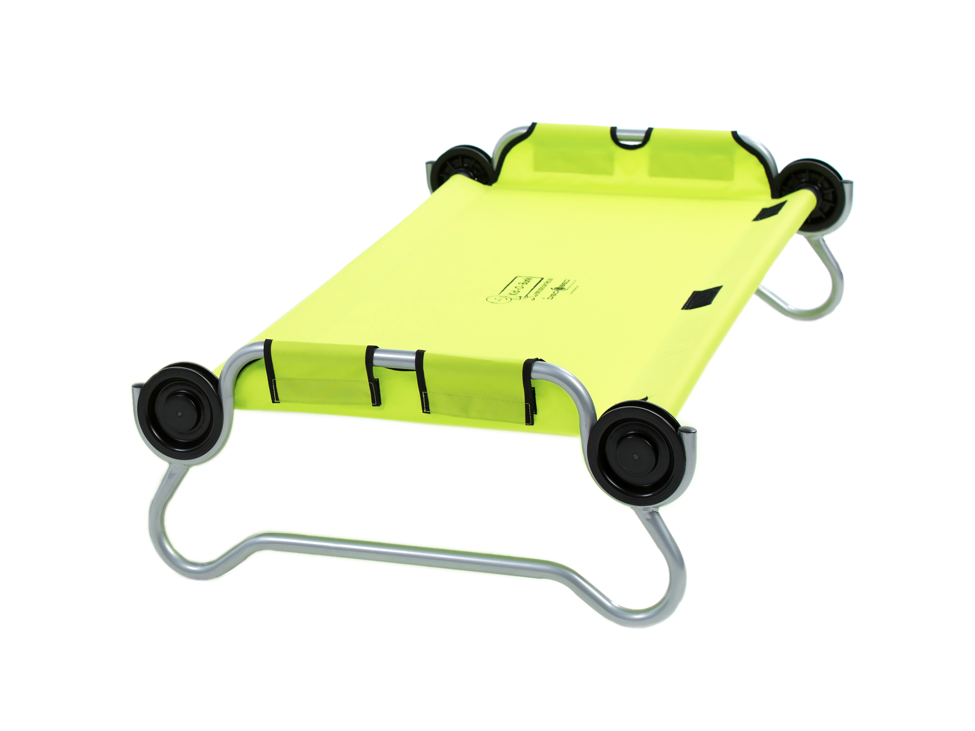 Die kindefreundliche Campinglösung! Perfekt für den Campingurlaub, Übernachtungspartys oder für den Besuch bei den Großeltern: das Kid-O-Bed ist das ideale Einzelbett für unternehmungslustige Kinder. Es ist schnell und einfach ganz ohne Werkzeug aufzubauen dank des modularen Disc-Systems. Außerdem ist es sehr komfortabel und flexible einsetzbar. Einfach Cool! Bitte beachten: Dieses Kid-O-Bed Bett ist ein klassisches Einzelbett, es hat den runden Rahmen! Es kann nicht mit einem weiteren gleichen Bett als Etagenbett genutzt werden! Für die Etagenbett-Lösung die Kid-O-Bunk wählen (1 mal runder + 1 mal gerader Rahmen)! TÜV geprüft! Geltungsbereich: verwendungsfertige Produkte wie z.B. Haushaltsgeräte, Werk- und Spielzeuge Prüfgrundlage: Das für Hersteller freiwillige Prüfzeichen „GS“ steht für „Geprüfte Sicherheit“. Verwendungsfertige Produkte und Arbeitsmittel, die mit dem GS-Zeichen gekennzeichnet sind, entsprechen den Anforderungen des deutschen Produktsicherheitsgesetzes (ProdSG). Der Prüfumfang des GS-Prüfzeichens deckt alle wesentlichen Produktmerkmale ab, wie elektrische Sicherheit, die Verwendung von Chemikalien und Gefahrstoffen, ergonomische Aspekte und Geräuschemissionen. Es bescheinigt Produkten, dass bei sachgemäßer Verwendung keine Gefahren für den Benutzer drohen. Außerdem umfasst es eine regelmäßige Überwachung der Produktion vor Ort im Werk des Herstellers. Das GS-Zeichen darf angebracht werden, solange das zugrunde liegende GS-Zertifikat gültig ist und das Produkt unverändert dem zur Prüfung vorgelegten Baumuster entspricht. Die offizielle TÜV-Zertifizierung können Sie hier einsehen. Weitere Informationen unter: www.tuev-sued.de/ps-zert Art Liegen: Feldbett, Gewicht: 8 kg, Breite Liegefläche: 70 cm, Integriertes Polster: Nein, Länge Liegefläche: 156,5 cm, Material Bezug: 100% Polyester (600D), PU beschichtet, Mit Tragetasche: Ja, Material Gestell: pulverbeschichteter rostabweisender Stahl, Rohrdetails: massives Stahlrohr, cleveres Stecksystem, Rückenlehne: nicht verstellbar, Belastbar bis: 91 kg, Farbe: grün / silber