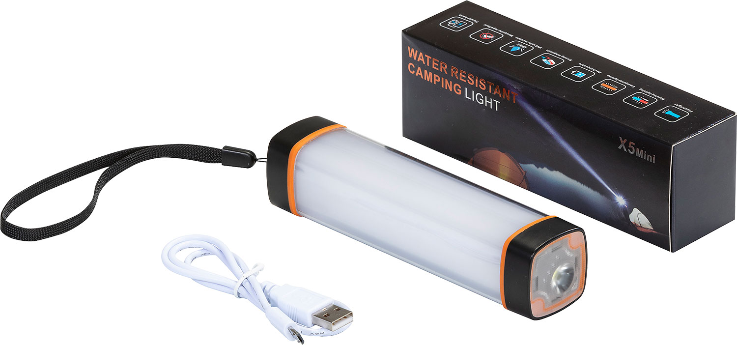 Universell einsetzbar beim Camping, beim Trekking und Wandern, beim Gardening und bei jeglichen Outdoor-Sports. Unverzichtbar in der Werkstatt, im Auto, im Caravan und Wohnmobil, am Grill, auf dem Balkon und der Terrasse. Die schnell aufladbaren Problemlöser der X5 Familie sorgen einfach per Knopfdruck stets für das passende Licht. alle X5 Lichter verfügen über 4 blaue LED`s, die in 25% Schritten zuverlässig den jeweils verfügbaren Ladestand anzeigen, bzw. bei kritisch geringer Ladung blinken! Keine Angst vor leeren Batterien! Die X5-Familie ist dank des stoßfesten Polycarbonat-Gehäuses und den Abdeckungen aus ABS sehr robust und langlebig. Die LED-Lebensdauer beträgt ca. 36.000 Stunden. Extra helle Taschenlampe, effizient genutzte 150 LM zum Ausleuchten von Wegen, Feldern, Straßen, jeglichem Gelände und Gebäuden, Gartenhäusern und Auto-Ecken jeder Art Laufzeit: 5 Stunden starke Magnete zur einfachen Befestigung an metallischen Gegenständen wie dem Disc-O-Bed, dem Sonnenschirm, am oder überm Grill, dem Gartentisch oder den Gartenmöbeln, und vielem mehr Not- + Alarmlicht, rot/blau für Notfälle in denen man erhöhte Aufmerksamkeit benötigt, wie z. Bsp. in den Bergen bei fehlender Mobilität, Wildunfall, etc.. Laufzeit: 80 Stunden Li-Ion Akku, komplett aufgeladen in nur 3 Stunden einfach über das mitgelieferte Mikro-USB-Ladekabel im Auto, am PC oder über Stromadapter aufladen. Kein Memory-Effekt, von daher jederzeit bei zu geringer Ladung wieder voll aufladbar. Powerbank-Funktion zum Laden von Handy, Lautsprecher, Tablet, Kopfhörer, etc. Kapazität: 2.500 mAh Spritzwasserschutz nach IP 65 jederzeit bedenkenlos nutzbar im Regen, im Schnee, beim Gärtnern im feuchten Gras und bei vielem mehr stimmungsvolles Moskito-Abwehr-Licht, orange das orangefarbene Stab-Licht wirkt im Gegensatz zu weißem Licht für eine Großzahl an Moskitos / Stechmücken abstoßend, und reduziert deren Aufkommen im Strahlungskreis. Es bietet jedoch keinen 100% Schutz gegen Stiche oder auch gegen Stechmücken- Aufkommen! Eine zudem stimmungsvolle Beleuchtungsvariante. Laufzeit: 5 Stunden weiße Stableuchte, in 2 Helligkeiten immer das richtige Licht, jeweils den Erfordernissen angepasst! Laufzeit: Stufe 1: 80 Stunden, Stufe 2: 5 Stunden Art Leuchten elektrisch: Campingleuchte, Farbe: schwarz, orange, Gewicht: 150 g, Leistung (W): 1,5 W, Durchmesser: 3,5 cm, Ladefunktion: USB, Leuchtdauer: 5 – 80 Stunden, Maße (LxBxH): 15 x 3,5 x 3,5 cm