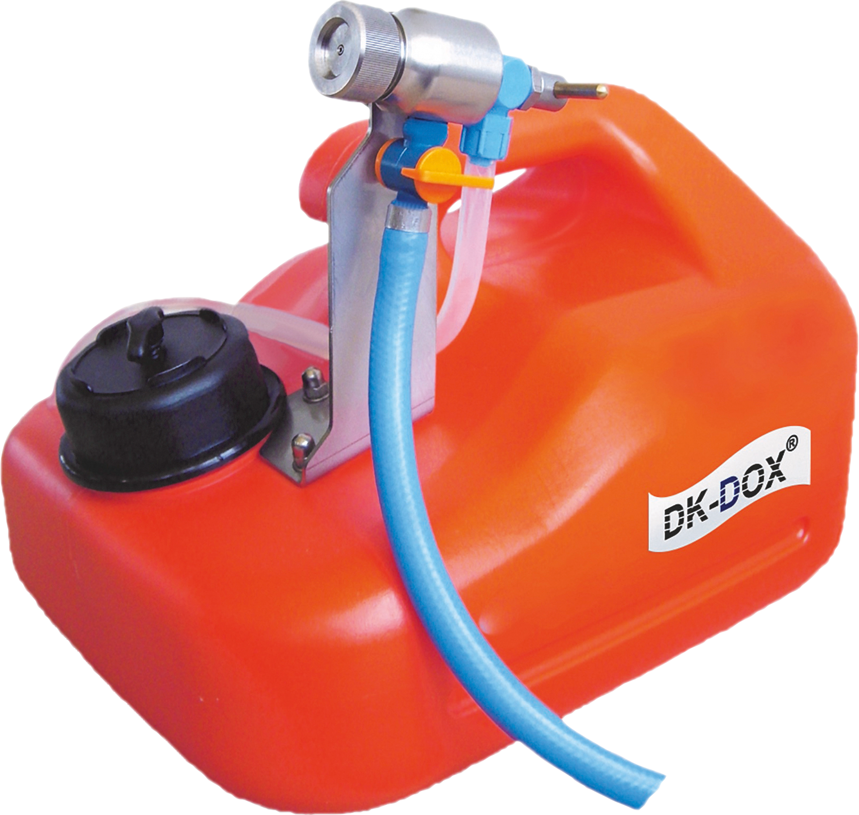DK-DOX Mini B5 – kompaktes Gerät zur Desinfektion und Geruchsneutralisation Mit dem DK-DOX Mini B5 kannst du Räume effektiv desinfizieren und Gerüche neutralisieren – ideal für Volumen von 200 bis 300 m³. Der Anschluss an einen Kompressor ist einfach, die passende Dosierdüse sorgt für den gewünschten Durchsatz. Je nach Einstellung erzeugst du trockenen, mittleren oder nassen Nebel. Das Gerät ist leicht, mobil und vielseitig einsetzbar – etwa zur Desinfektion, Staubbindung oder Luftbefeuchtung. Details: * Für Raumvolumen von ca. 200–300 m³ * Anschluss an Kompressoren mit 3 bar und ca. 100 l/min * Unterschiedliche Nebelarten wählbar (trocken, mittel, nass) * Reichweite ca. 8–15 m (abhängig von Einbauten) * 50 ml DK-DOX fresh reichen für 1 m³ Raum * Mit Tragegriff, Mittelbehälter, Schlauch und Dosierdüse Technische Daten: * Maße (L x B x H): 30 x 23 x 26 cm * Gewicht: ca. 2 kg * Druck: 3 bar * Effektive Druckluftmenge: ca. 100 l/min * Durchsatz trockener Nebel: 1–2,5 l/h * Durchsatz mittlerer Nebel: bis 4 l/h * Durchsatz nasser Nebel: bis 8 l/h * Düse: W03 / 30 * Dosierdüse: W30 (austauschbar) * Mittelbehälter: 5 oder 10 Liter Lieferumfang: * DK-DOX Mini B5 * Mittelschlauch * Tragegriff * Mittelbehälter (5 oder 10 Liter) * Düse W03 / 30 * Dosierdüse W30 * Behälter-Entlüftung * Druckluftanschluss