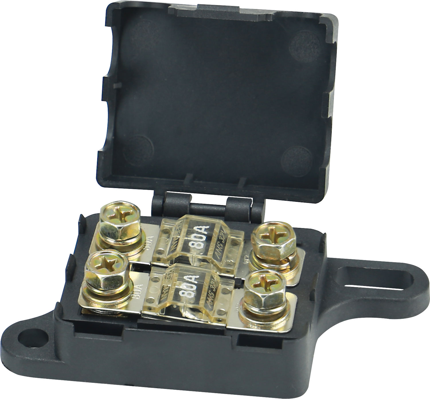 12 V/24 V Sicherungshalter für Sicherung Typ ME. Beidseitig M6. Lieferung ohne Sicherung. Ausführung: Für 2 Sicherungen