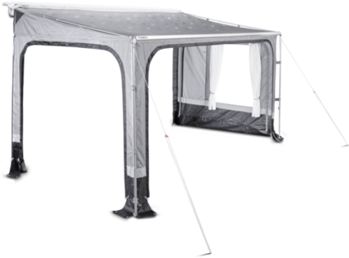 Dieses einfach aufzubauende Zelt bietet Ihnen einen zusätzlichen Raum vor dem Fahrzeug. Das aus wetterfestem Polyester hergestellte Zelt verfügt über kristallklare Fenster und schützt Sie auf komfortable Art und Weise vor Wind und Wetter. Schnelle und einfache Montage Die Seitenwände werden einfach per Reißverschluss am Dach der Revo Zip Markise befestigt Perfekt abgestimmtes design Die Vorderwand wird in die Vorderschiene der Revo Zip Markise eingeführt, die Seitenwände werden per Reißverschluss befestigt Komfortable Privatsphäre Vorhänge samt Schiene sind im Lieferumfang enthalten Hält Insekten fern Netzelemente hinter den Seitentüren Details * Ein zusätzlicher Raum vor Ihrem Fahrzeug, der zum Beispiel als Gästezimmer verwendet werden kann * Im Handumdrehen einsatzbereit: Die Seitenwände werden per Reißverschluss befestigt, die Vorderwand in die Schiene eingeführt * Starkes 210D Weathershield Polyester schützt zuverlässig vor Wind und Wetter * Kristallklare Fenster bieten Ausblicke und schaffen eine geräumige Raumatmosphäre * Inklusive Vorhängen, die sich mühelos in die Schiene einführen lassen * Netzelemente hinter den Seitentüren lassen Luft, aber keine Insekten herein * Die Höhe der Seitenwände kann auf Fahrzeuge mit einer Schienenlänge von 240–270 cm abgestimmt werden Eins besonders smartes Upgrade für Ihre Revo Zip Markise Sind Sie bereits stolzer Besitzer einer Dometic Revo Zip Markise zum Ausrollen? Dann können Sie sich mithilfe der perfekt dazu passenden Dometic Revo Zip Markise einen zusätzlichen Raum vor Ihrem Fahrzeug schaffen. Sie brauchen dazu nur die Seitenwände mit dem Reißverschluss an Ihrer Revo Zip Markise zu befestigen. Die Vorderwand lässt sich in die Schiene der Markisen-Vorderwand einführen. Die hochwertige Markise bietet Ihnen Komfort und Privatsphäre. Sie besteht aus robustem 210D Weathershield Polyester und verfügt über Netzelemente hinter den Seitentüren, welche zwar Luft, aber keine Insekten hereinlassen. Dank kristallklarer Fenster, können Sie die Aussicht genießen. So fühlt sich der Raum deutlich geräumiger an. Die Markise ist mit Vorhängen, Seitentüren und einer schmutzabweisenden Wand ausgestattet. Lieferumfang * 1 Vorderwand * 2 Seitenwände * Die abgebildete Markise ist nicht Teil des Lieferumfangs Art Markisenwand /-Zelt: Markisenvorzelt ohne Markise, Art Markisenzubehör: Markisen-Wände, Ausführung: Revo Zip 270 privacy room Markisenzelt, Material: 100 % Polyester, Tiefe: 2,15 m