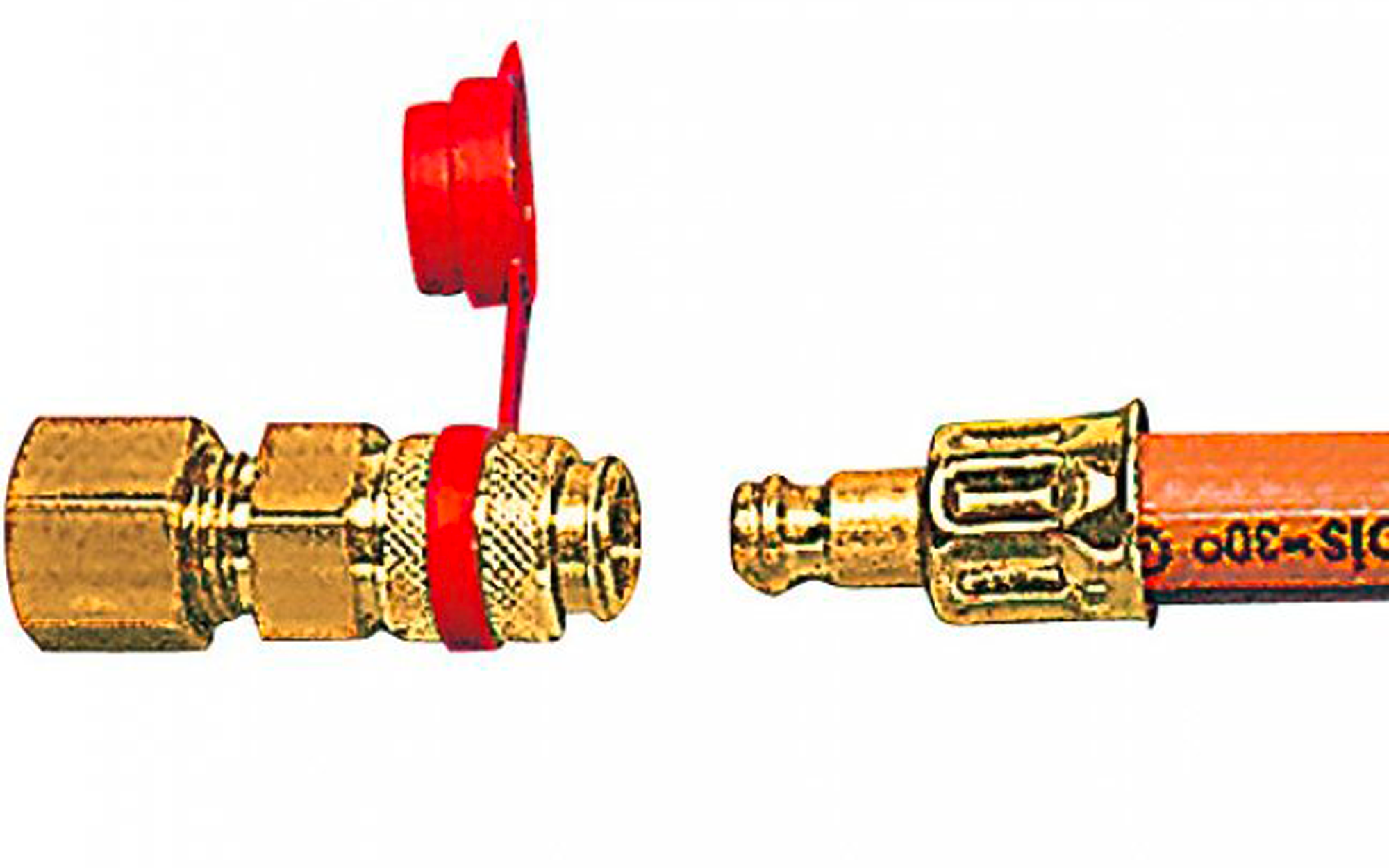 Absolut gasdicht, sobald der Spezialschlauch abgezogen wird. RVS8 x Steck. Mit Zusatzsicherung, zum Anschluss an 8 mm Rohre. Lieferung ohne Spezial-Schlauch für Gassteckdosen. Art Gasregler, Gasschläuche: Leitungen und Zubehör, Farbe: gold, rot