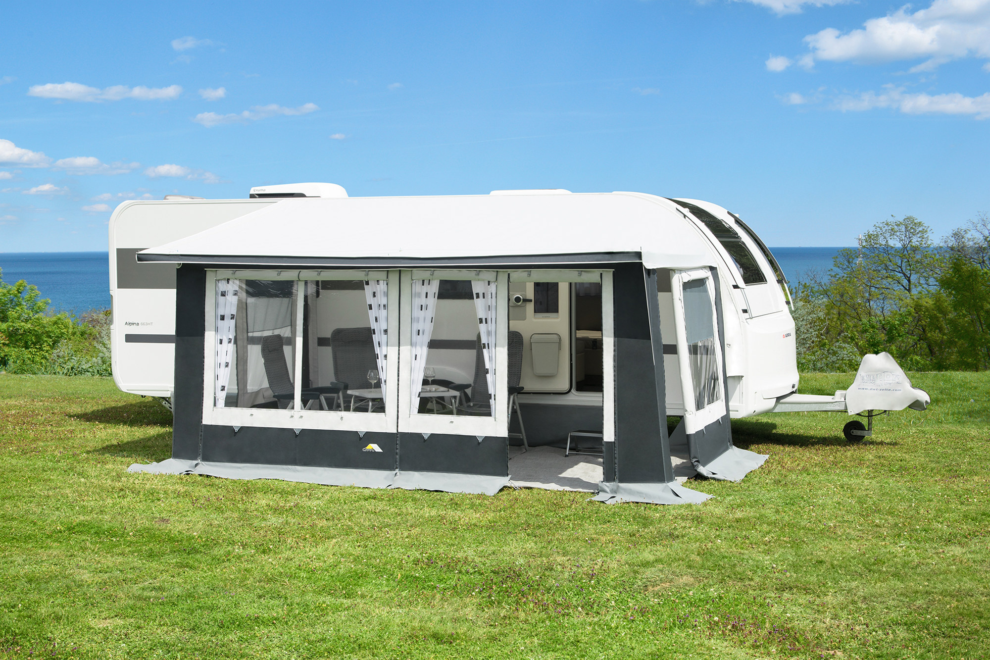 dwt Juwel 4 Seasons Pultdach-Teilzelt – Stabiler Ganzjahres-Wetterschutz mit Komfortausstattung Das dwt Juwel 4 Seasons ist ein hochwertiges Pultdach-Teilzelt für alle Jahreszeiten. Mit seinem beidseitig kunststoffbeschichteten Polyestergewebe bietet es dauerhaften Schutz vor Wind, Regen und Sonne. Herausnehmbare Wände, versetzbare Türen und UV-absorbierende Fenster sorgen für hohen Komfort und flexible Nutzung. Dank des stabilen Stahlgestänges mit Andruckstangen, Schaumstoffwülsten und doppelten Windecken steht das Zelt auch bei Sturm sicher und dicht – ideal für lange Camping-Saisons. Details: * Für Wohnwagen mit einer Höhe von 240 – 258 cm * Zelttiefe ca. 240 cm, Vordachtiefe ca. 25 cm * Dach, Wände und hochgezogener Spritz- und Erdstreifen aus hochwertigem, beidseitig kunststoffbeschichtetem Polyestergewebe * (Polyvinylchlorid-beschichtet), wetterfest und komplett abwaschbar * Fenster aus UV-absorbierender Folie (ca. 90 %), mit Klappen und Reißverschlüssen verschließbar * Vorderwand herausnehmbar, zur Veranda abklappbar, Vorderwandhälften austauschbar, Tür versetzbar * Größe 1–3 mit zwei Fenstern, Größe 4–6 mit zwei Fenstern und Eingangstür * Seitenwände herausnehmbar, austauschbar, Eingangstür hochrollbar * Große Lüftungsfenster (½ Gaze, ½ Klarfolie) mit doppelter Fensterklappe * Alle Reißverschlüsse mit zusätzlicher Abdeckung * Eingenähte Schaumstoffwülste für dichte Verbindung am Wohnwagen * Hochentlüftung für bessere Luftzirkulation * Waagerechte und senkrechte Hohlsäume mit Klettverschlüssen * Doppelte Windecken, stabile Sturmlaschen und Vorbereitung für Sicherheitsgurt * Gardinen mit Keder und Röllchen * Optionales Verandadach mit Tiefe von ca. 270 cm, Anbringung über Keder und Doppelkederschiene * Vario-Clip-System für schraublose Montage (optional) Technische Daten: * Gestänge: Stahlrohr, Durchmesser 28 x 1 mm, inkl. 2 Andruckstangen * Zelttiefe: ca. 240 cm * Vordachtiefe: ca. 25 cm * Größe 1 links: Teileinzugmaß 520 – 540 cm, Bodenmaß 310 x 240 cm * Größe 2 links: Teileinzugmaß 570 – 590 cm, Bodenmaß 360 x 240 cm * Größe 3 links: Teileinzugmaß 600 – 620 cm, Bodenmaß 390 x 240 cm * Größe 4 links: Teileinzugmaß 630 – 650 cm, Bodenmaß 420 x 240 cm * Größe 5 links: Teileinzugmaß 660 – 680 cm, Bodenmaß 450 x 240 cm * Größe 6 links: Teileinzugmaß 700 – 720 cm, Bodenmaß 490 x 240 cm * Größe 1 Mitte: Bodenmaß 300 x 240 cm * Größe 2 Mitte: Bodenmaß 350 x 240 cm * Größe 3 Mitte: Bodenmaß 380 x 240 cm * Größe 4 Mitte: Bodenmaß 410 x 240 cm * Größe 5 Mitte: Bodenmaß 440 x 240 cm * Größe 4 rechts: Teileinzugmaß 610 – 630 cm, Bodenmaß 420 x 240 cm * Größe 5 rechts: Teileinzugmaß 640 – 660 cm, Bodenmaß 450 x 240 cm * Größe 6 rechts: Teileinzugmaß 680 – 700 cm, Bodenmaß 490 x 240 cm Lieferumfang: * Zelthaut * Gestänge mit Andruckstangen * Gardinen * Abspannmaterial * Rad- und Windblende * 1 Packsack * 2. Packsack für Gestänge Art Wohnwagenvorzelte: Ganzjahresvorzelt, aufblasbar: Nein, Farbe: dunkelgrau, Material: Polyester, Typ Vorzelt: Teilvorzelt, Abgedeckte Reissverschlüsse: Ja, Fensterklappe außen: Ja, Giebelhochentlüftung: Ja, Moskitonetz: Ja, Seitenwand herausnehmbar: Ja, Sturmabspannung: Ja, Verandaeffekt: Ja, Vordach: Ja, Vorderwand herausnehmbar: Ja, Zusätzlicher Seiteneingang: Ja, Ausführung: rechts, Gewicht: 48 kg, Anbauhöhe (von – bis): 240 – 258 cm, Maße (BxT): 450 x 240 cm, Umlaufmaß bis: 640 cm, Umlaufmaß von: 660 cm