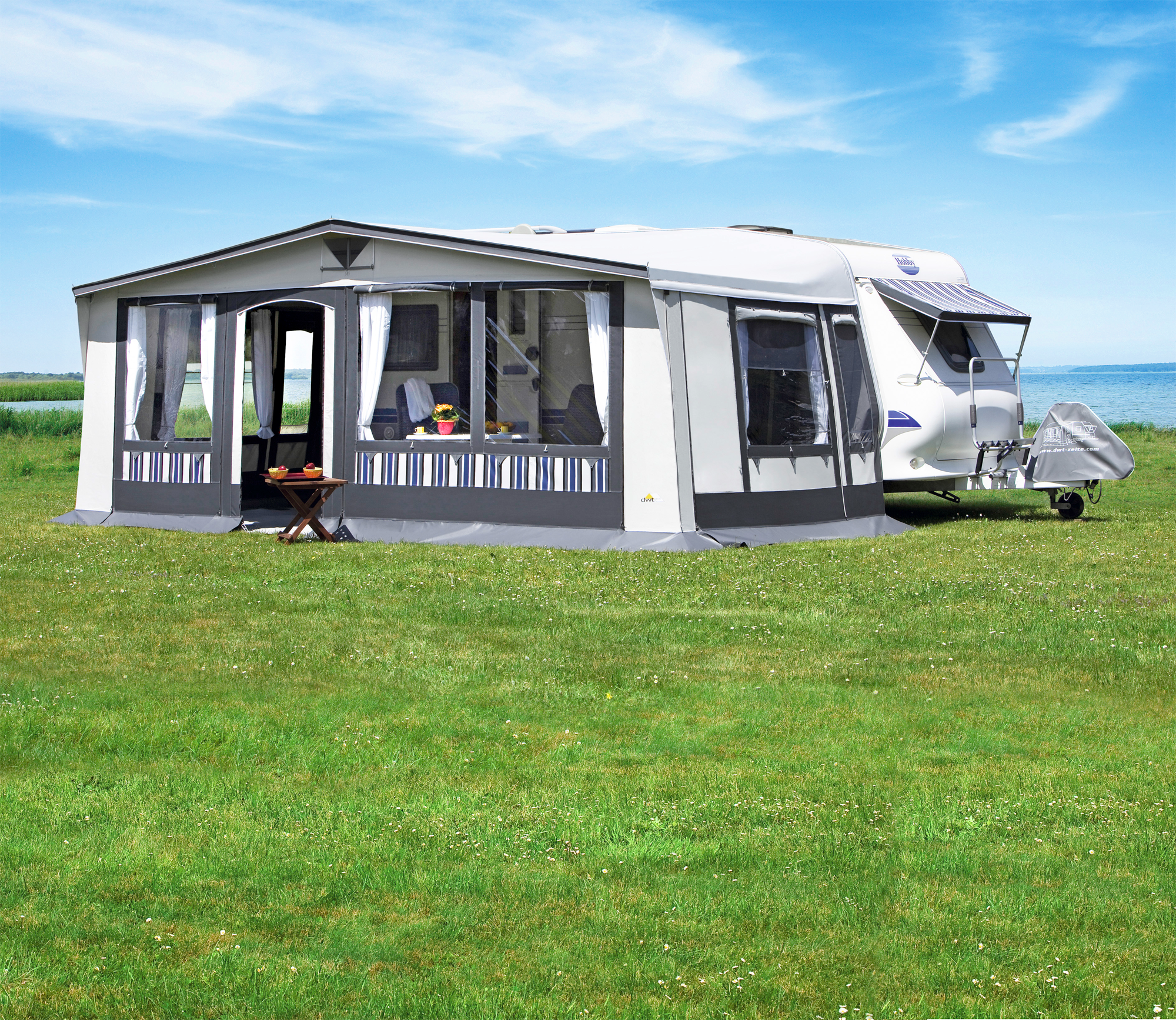 Dwt Tango Saison- und Ganzjahresvorzelt weiß / grau 971 – 1000 cm; 240 cm – Wohnwagenvorzelte