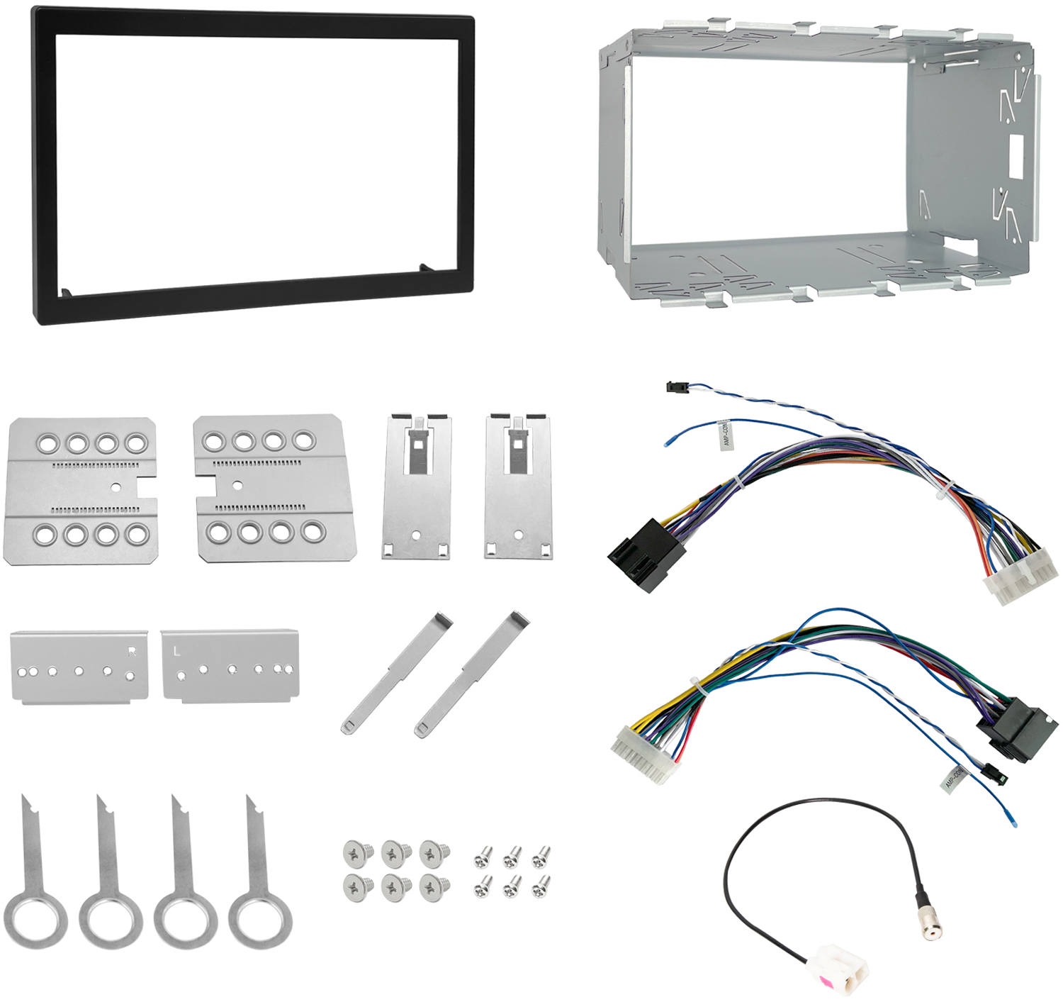 Dynavin DVN-T5TPAPT – Einbausatz für D9-V10W Premium und D9-V10W Premium Flex VW T5 Transporter Der Dynavin DVN-T5TPAPT Einbausatz erleichtert Dir die Installation der Dynavin Navigationssysteme D9-V10W Premium und D9-V10W Premium Flex. Das Set enthält alle notwendigen Komponenten für eine sichere und passgenaue Montage – von Metallrahmen über Halterungen bis hin zu Schrauben und Kabeln. Dank der präzisen Abmessungen passt der Einbausatz perfekt in den vorgesehenen Einbauschacht und sorgt für einen professionellen, stabilen Einbau. Details * Komplettset zur einfachen Installation von D9-V10W Premium und D9-V10W Premium Flex * Passgenaue Komponenten für sicheren Halt und präzisen Sitz * Enthält alle erforderlichen Halterungen, Kabel und Befestigungselemente * Ideal für professionelle oder eigene Nachrüstung * Stabile Konstruktion mit Metallkäfig und Kunststoffrahmen Technische Daten * Metallkäfig: 187,5 x 108,5 x 108 mm * Kunststoffrahmen: außen 188 × 110 mm / innen 174 × 98,5 mm * Material: Metall und Kunststoff * Kompatibilität: D9-V10W Premium, D9-V10W Premium Flex Lieferumfang * 1x Metallkäfig * 1x Einbaublende * 4x Metallhalterung * 2x Abstandshalter * 2x Anschlusskabel * 1x Radio-Antenne * 6x Entriegelungsschlüssel * 12x Schrauben