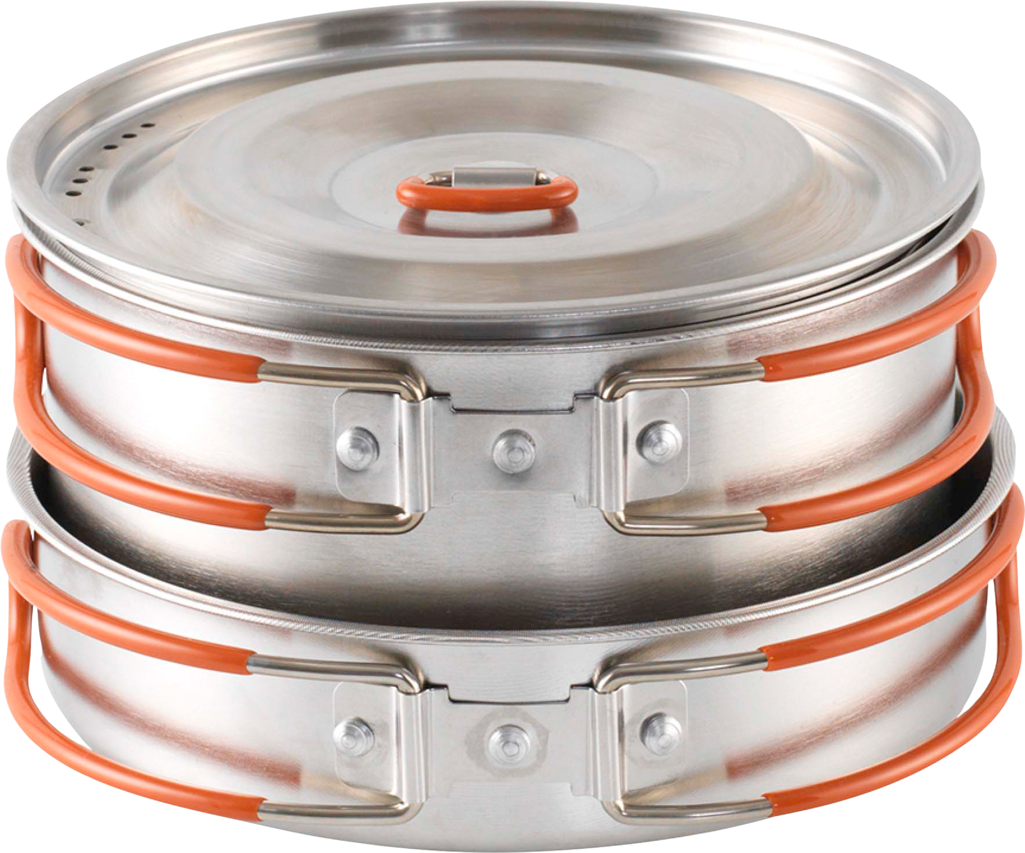 Moss Tour Kochset – Kompakt, robust und ideal für unterwegs Das Moss Tour Kochset ist deine platzsparende Kochlösung für Camping und Reisen. Mit Antihaftboden, integrierten Siebdeckeln und hitzebeständigen Silikongriffen kochst du einfach und komfortabel. Das stapelbare Design und die Tragetasche machen den Transport besonders leicht – perfekt für dein nächstes Outdoor-Abenteuer. Details: * MicroGrid-Antihaftboden verhindert Anhaften von Speisen * Integrierte Siebe in den Deckeln * Edelstahlgriffe mit Silikonüberzug * Stapelbares Design für geringes Packmaß * Spülmaschinenfest und mit Tragetasche Technische Daten: * Inhalt: 2 Töpfe (2 L und 3 L), 2 Deckel, 1 Pfanne * Topf 2 L: 9,8 × 17,5 cm (H x Ø) * Topf 3 L: 10,5 × 19 cm (H x Ø) * Pfanne: 5 × 20 cm (H x Ø) * Packmaß: 11 × 21 cm (H x Ø) Lieferumfang: * 2 x Topf (2 L und 3 L) * 2 x Deckel mit Sieb * 1 x Pfanne * 1 x Tragetasche Spülmaschinenfest: Ja, Gewicht: 1205 g, Material: Edelstahl