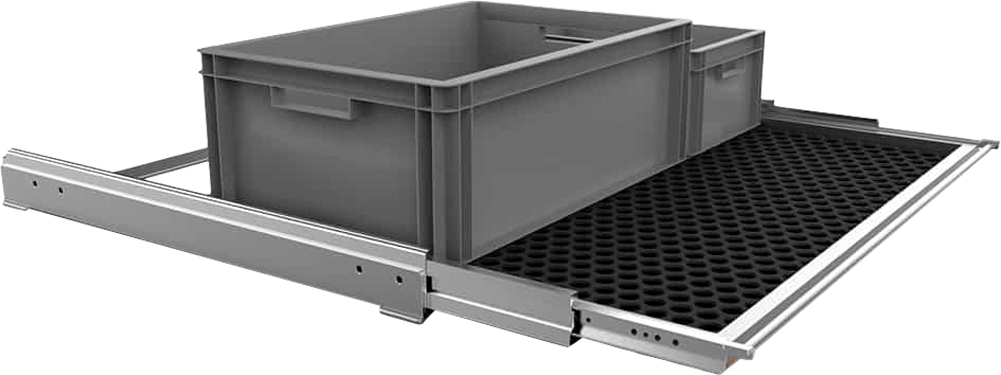 Unser vanlife.module SLIDEOUT optimiert deinen Stauraum. Mit 100% ausziehbaren Schwerlastauszügen im Eurobox-Raster und einer Belastbarkeit von 200 kg bietet es optimale Funktionalität. Egal ob Heckauszug, Bike-Auszug oder Schiebetür-Auszug – unser vielseitiger SLIDEOUT ist die ideale Lösung. Ergonomisch, einfach zu bedienen und passend für fast jedes Fahrzeug, sei es Camper, Wohnmobil, LKW oder PKW. Finde den perfekten Auszug in den richtigen Maßen für dich. Ausführung: Für VW T5-T6.1 California Beach & Ocean, Belastbar bis: 200 kg