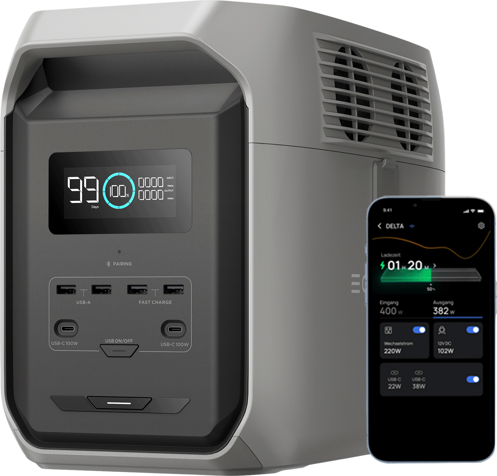 EcoFlow DELTA 3 Serie: Leistungsstarke, tragbare Stromversorgung Die EcoFlow DELTA 3 Serie umfasst vielseitige, tragbare Powerstations von kompakten 1.024 Wh bis leistungsstarken 4.096 Wh Kapazitäten. Sie liefert zuverlässige Energie für Zuhause, unterwegs oder im Notfall und kann nahezu alle Haushaltsgeräte und Elektronik zuverlässig versorgen. Dank flexibler Ladeoptionen über Steckdose, Solarpanel oder Autoanschluss sind die Geräte stets schnell wieder aufgeladen. Integrierte Sicherheitsfunktionen, leiser Betrieb und robuste Batteriequalität sorgen für hohe Zuverlässigkeit und lange Lebensdauer. Die Modelle bieten unterschiedliche Leistungsstufen und Anschlussvielfalt, bleiben dabei aber einfach zu bedienen und bestens geeignet für Notstrom, Outdoor‑Einsätze oder mobile Energie. Delta 3 Delta 3 1500 Delta 3 Plus Delta 3 Pro Dauerleistung 1800 W 1800 W 1800 W 4000 W X-Boost Bis 3600 W Bis 2400 W Bis 2400 W Bis 6000 W Kapazität 1024 Wh 1536 Wh 1024 Wh 4096 Wh USV-Umschaltzeit 10 ms 15 ms
