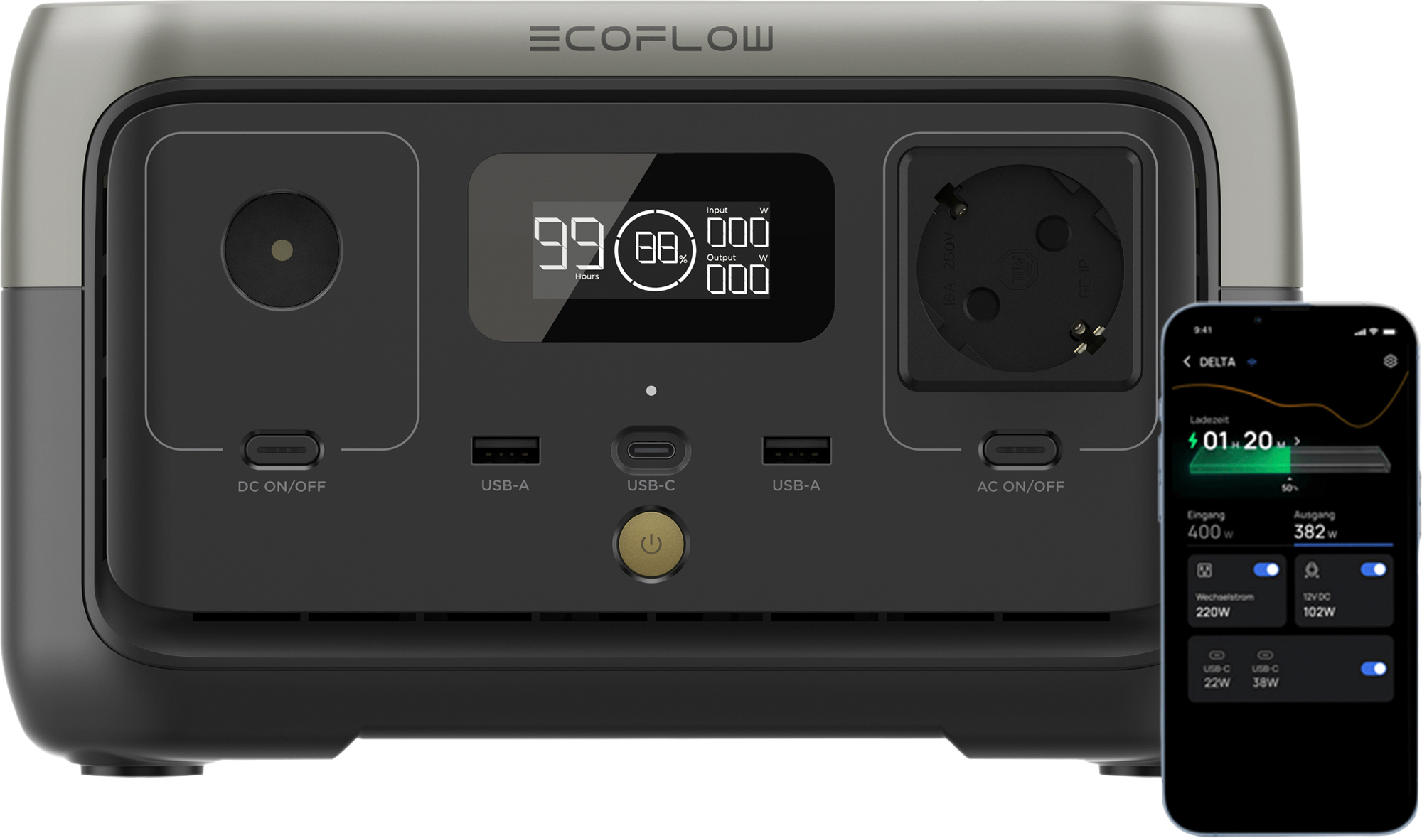 EcoFlow River 2 Serie: Mobile Powerstations für unterwegs und zuhause Die EcoFlow River 2 Serie bietet kompakte und leistungsstarke tragbare Powerstations für Camping, Vanlife, Outdoor-Einsätze und als flexible Notstromlösung. Dank langlebiger LiFePO₄-Batterietechnologie, extrem schneller Ladezeiten und vielseitiger Anschlussmöglichkeiten versorgen die Modelle River 2 und River 2 Pro zuverlässig unterschiedlichste Geräte, vom Smartphone bis zur Kühlbox.Beide Powerstations lassen sich über Netzstrom, Kfz oder Solarpanel laden und überzeugen durch hohe Sicherheit, lange Lebensdauer und maximale Flexibilität überall dort, wo kein Stromanschluss verfügbar ist. EcoFlow River 2 Powerstation EcoFlow River 2 Pro Powerstation Dauerleistung 300 W 800 W X-Boost Bis 600 W Bis 1600 W Kapazität 256 Wh 768 Wh Solareingang 11-30V, 8A, 110W Max. 11-50V, 13A, 220 W Max. AC-Eingang 220-240V 50Hz/60Hz, 360 W Max. 220-240V 50Hz/60Hz, 870W Max. Eingang über KFZ-Bordnetz 12V/24V, 8A, 100W Max. 12V/24V, 8A, 100W Max. AC-Ausgang Reine Sinuswelle, 300 W gesamt (600 W Überspannung), 230V 50Hz/60Hz Reine Sinuswelle, 800 W gesamt (1600 Überspannung), 230V 50Hz/60Hz DC-Ausgang 12.6 V, 8A, 100W Max. 12.6 V, 10A / 3 A / 3 A, 126W Max. USB-A-Ausgang 5V, 2,4 A, 12 W Max. 5V, 2,4 A, 12 W Max. Temperatur Laden 0 °C bis 45 °C 0 °C bis 45 °C Temperatur Entladen -10 °C bis 45 °C -10 °C bis 45 °C Optimale Betriebstemperatur 20 °C bis 30 °C 20 °C bis 30 °C Ladezeit (AC) ca. 60 Minuten (0-100%) ca. 70 Minuten (0-100%) USV-Funktion automatische Umschaltung,