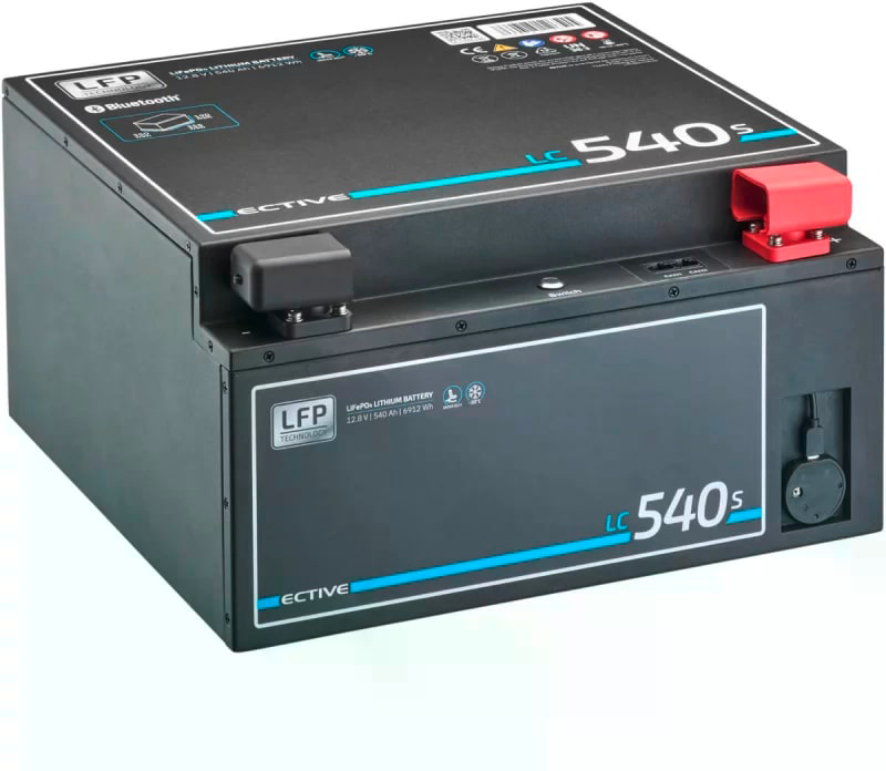 ECTIVE LC S LT Untersitzbatterie – starke Lithium-Power für den Sitzkasten Die ECTIVE LC S LT LiFePO4 Untersitzatterien liefern dir maximale Energie bei minimalem Platzbedarf. Mit bis zu 540 Ah Kapazität, integriertem CoreTech BMS, aktiver Zellüberwachung und Heizfunktion sind sie perfekt für den Einbau unter dem Fahrer- oder Beifahrersitz in Campern, Wohnmobilen und Tinyhouses geeignet. Du profitierst von 100 % nutzbarer Kapazität, CAN-Bus-Anbindung und smarter Steuerung via Bluetooth-App. Details: * Speziell für den Einbau unter Fahrzeugsitze konzipiert * Hohe Kapazität bei kompakten Abmessungen * Integriertes CoreTech BMS mit Bluetooth 7.0 * Aktives Zellbalancing für maximale Lebensdauer * Heizfunktion für Ladevorgänge bis –30 °C * Ein-/Ausschalter zur Minimierung der Selbstentladung * Kompatibel mit CAN-Bus und Fahrzeugladung * Verschraubbares Gehäuse für einfache Wartung * LiFePO4-Technologie mit prismatischen Zellen Technische Daten – 320 Ah: * Kapazität: 320 Ah (4096 Wh) * Maße: 355 × 224 × 190 mm * Gewicht: 32,00 kg * Entladestrom: 200 A konstant, 300 A Spitze * Zyklen bei 80 % DoD: 6800 Technische Daten – 540 Ah: * Kapazität: 540 Ah (6912 Wh) * Maße: 355 × 350 × 190 mm * Gewicht: 46,00 kg * Entladestrom: 300 A konstant, 400 A Spitze * Zyklen bei 80 % DoD: 6800 Gemeinsame Daten: * Technologie: LiFePO4 (Lithium-Eisenphosphat) * Nennspannung: 12,8 V * Temperaturbereich Ladung: –30 °C bis 55 °C * Temperaturbereich Entladung: –20 °C bis 60 °C * Lagerung: –10 °C bis 45 °C * Maximale Batterien in Reihe: 2 * Anschluss: M8 * Zertifizierung: ECE R10, IP 21, CE, UN38.3, UL1973 Lieferumfang: * 1 ECTIVE LC S LT LiFePO4 Untersitzbatterie (gewählte Variante) Batterie Bauart : Lithium / LiFePO4 Batterie , Spannung: 12 V, Akku-Nennleistung (Wh): 6912 Wh, Kapazität (Ah): 540 Ah