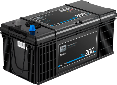 Ective NaC BT Natrium Versorgungsbatterien – Nachhaltige Energie für autarkes Reisen Mit den Ective NaC Versorgungsbatterien genießt du zuverlässige Stromversorgung auf Basis moderner Natrium-Ionen-Technologie. Sie sind langlebig, sicher und perfekt für Wohnmobil, Caravan, Boot oder Tinyhaus geeignet. Dank Bluetooth 7.0 und der connECTIVE App hast du alle Werte immer im Blick – selbst bei Kälte oder langen Standzeiten. Details: * Natrium-Ionen-Technologie – ressourcenschonend, sicher und umweltfreundlich * Bis zu 10.000 Ladezyklen (30 % DoD) und 100 % nutzbare Kapazität * Hohe Entladeströme für Geräte wie Klimaanlagen oder Induktionskochfelder * CoreTech BMS mit Zellschutz, passivem Balancing und integriertem Ein-/Aus-Schalter * Bluetooth 7.0 mit connECTIVE App zur Echtzeitüberwachung * CAN-Bus-Anbindung zur Integration in die Fahrzeugelektronik * Reihenschaltung von bis zu 4 Batterien möglich * Extrem niedrige Selbstentladung – ideal für lange Standzeiten * Einsatzfähig bis –20 °C, ladbar bis –10 °C, keine Heizplatten nötig * Endpolart SAE, nahezu wartungsfrei und leichter als Blei * ECE R10-zertifiziert für sicheren Betrieb im Fahrzeug Technische Daten: * Batterietechnologie: Natrium-Ionen * Spannung: 12 V * Gefahrgutklasse: 9 (UN 3551) * Batteriemanagementsystem: Integriert (CoreTech BMS, passives Zellbalancing) * Bluetooth-Funktion: Ja (Version 7.0 mit connECTIVE App) * Betriebsbereiche: * Entladung –20 °C bis +55 °C * Ladung –10 °C bis +45 °C * Lagerung –20 °C bis +45 °C * NaC 100 BT 12 V Natrium Versorgungsbatterie 100 Ah * Kapazität: 100 Ah (1200 Wh) * Maße (L x B x H): 398 x 175 x 188 mm * Gewicht: 18,20 kg * Max. konstanter Entladestrom: 100 A * Spitzenentladestrom: 1000 A * Empfohlene Ladespannung: 15,8 V * Empfohlener Ladestrom: 50 A * Entladezeit bei 25 A: 240 min * NaC 200 BT 12 V Natrium Versorgungsbatterie 200 Ah * Kapazität: 200 Ah (2400 Wh) * Maße (L x B x H): 522 x 238 x 235 mm * Gewicht: 26,40 kg * Max. konstanter Entladestrom: 200 A * Spitzenentladestrom: 1500 A * Empfohlene Ladespannung: 15,8 V * Empfohlener Ladestrom: 100 A * Entladezeit bei 25 A: 480 min Lieferumfang: * Ective NaC 100 BT oder NaC 200 BT Natrium Versorgungsbatterie * Bedienungsanleitung Batterie Bauart : Natrium-Ionen-Batterien, Spannung: 12 V, Akku-Nennleistung (Wh): 2400 , Gewicht: 26,4 kg, Kapazität (Ah): 200 Ah