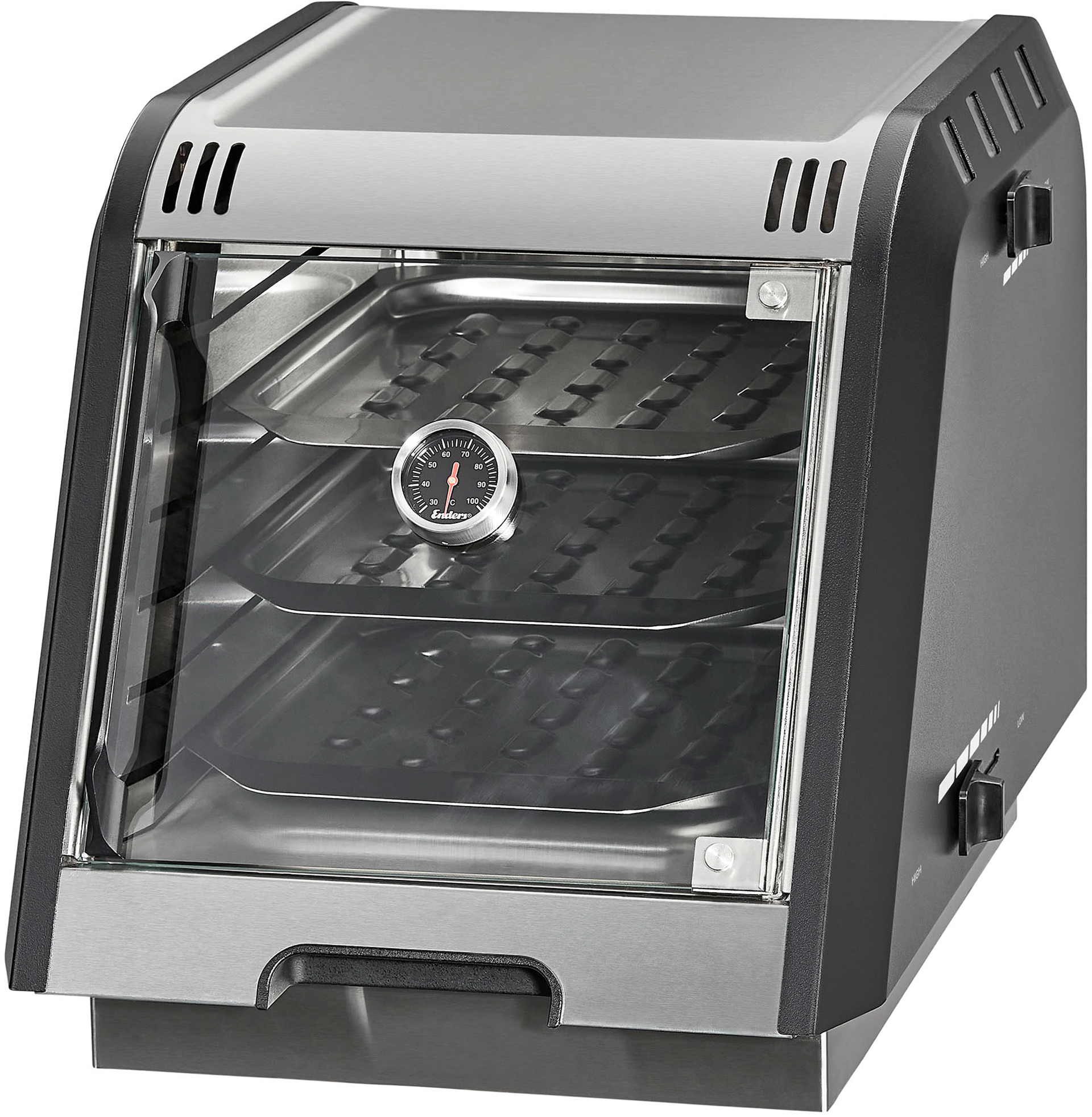 Enders Delicater-Ofen für Uniq Pro 3 IK Cruster und 3 IK Kitchen Cruster Mit dem Delicater-Ofenaufsatz erweiterst du deinen Enders Uniq Pro 3 IK Cruster oder 3 IK Kitchen Cruster um eine vielseitige Garmöglichkeit. Der Aufsatz bietet eine konstante Temperatur im Bereich von 80 °C bis 150 °C und ist ideal zum schonenden Niedriggaren mehrerer Fleischstücke. Drei Edelstahl-Einschubbleche sorgen für flexible Nutzung und optimale Wärmeverteilung. Details: * Konstante Temperatur im Bereich von 80 °C bis 150 °C * Optimal für langsames Garen von Fleisch * Passend für Uniq Pro 3 IK Cruster und 3 IK Kitchen Cruster * Gleichmäßige Wärmeverteilung im Garraum * Ideal als Erweiterung für anspruchsvolle Grillanwendungen * Einfache Handhabung und Reinigung Technische Daten: * Temperaturbereich: 80 °C bis 150 °C * Material Einschubbleche: Edelstahl * Kompatibilität: Enders Uniq Pro 3 IK Cruster / 3 IK Kitchen Cruster Lieferumfang: * 1 Delicater-Ofenaufsatz * 3 Edelstahl-Einschubbleche