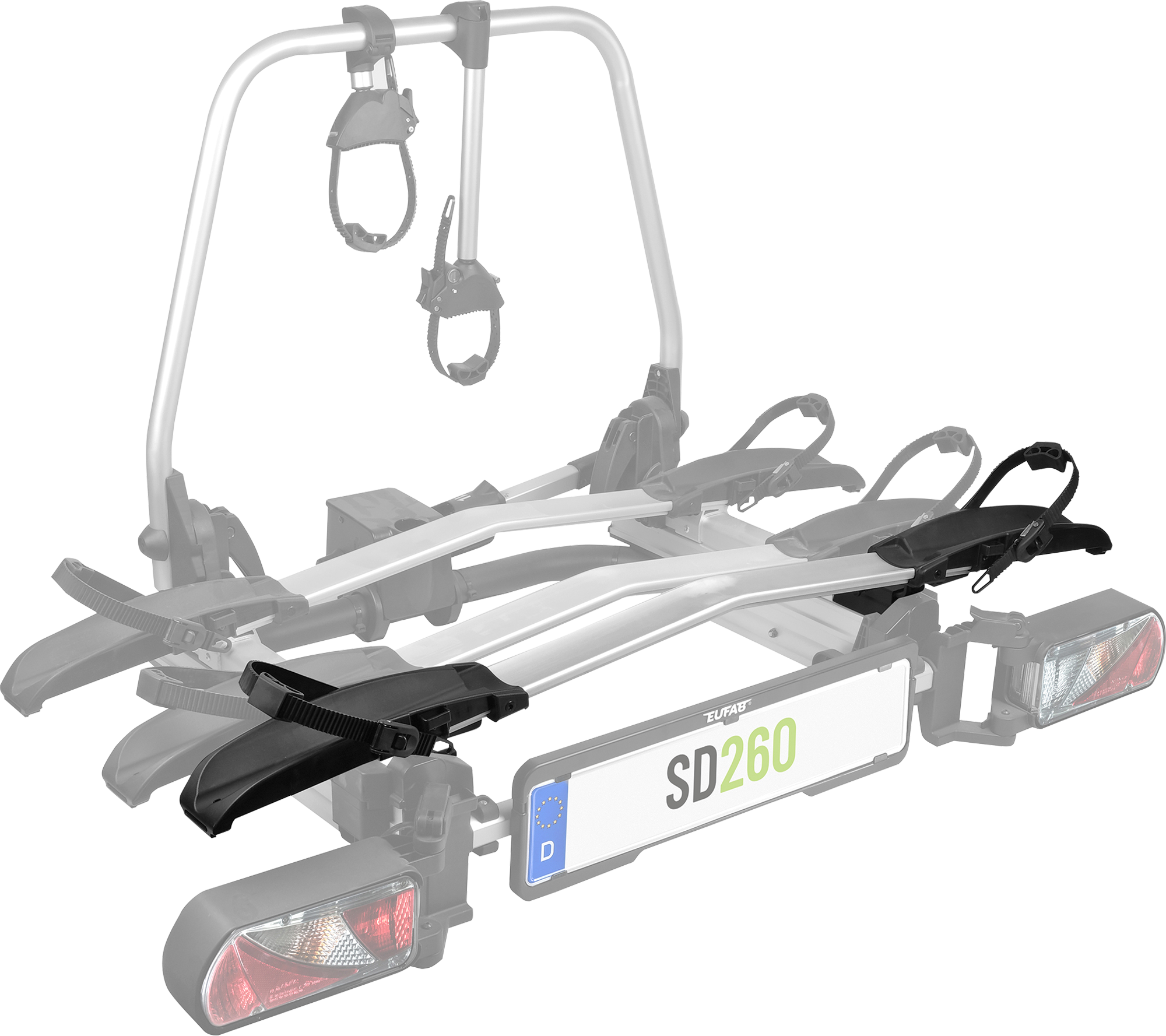 Erweiterung 3. Fahrrad für SD260 Die Erweiterung für das 3. Fahrrad ermöglicht den Transport eines zusätzlichen Fahrrads am SD260 Fahrradträger. Ausgestattet mit einem abschließbaren Strap-Rahmenhalter und stabiler Aluminiumschiene. Details * Beidseitig abschließbare Strap-Rahmenhalter * Stabile Aluminiumschiene mit Kunststoffradhalterungen * Max. Reifenbreite: 3,25 Zoll / 80 mm * Kompakte Bauweise * Für Fahrräder mit einem Radstand bis 130 cm Technische Daten * Max. Nutzlast: 30 kg * Gewicht: 2,5 kg Lieferumfang * 1 Erweiterung für das 3. Fahrrad Art Fahrradträgerzubehör: Erweiterungsschiene, Farbe: silber