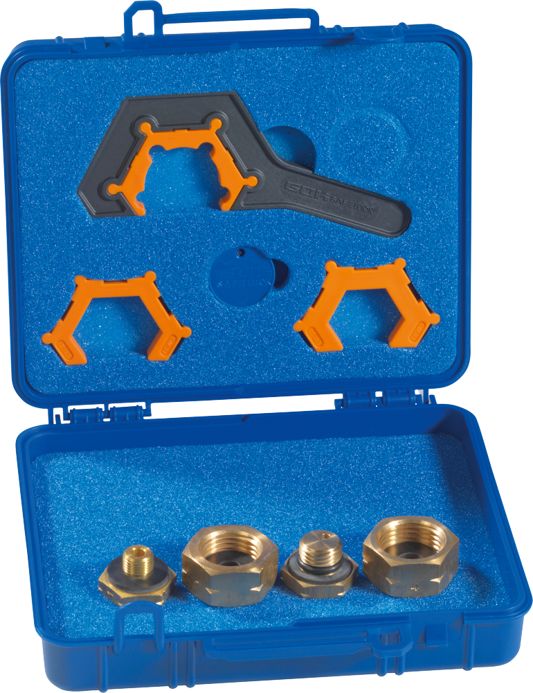 Euro-Set D Professional Für die nahtlose Integration eines deutschen Druckreglers an die weit verbreiteten Gasflaschen auf dem europäischen Markt steht dir unser EuroTool im praktischen Werkzeugkoffer zur Verfügung. Dieses umfassende Set enthält drei verschiedene Wechseleinsätze sowie einen vielseitigen Übergangsstutzen von 1 bis 4, zusammengestellt aus dem Euro-Set D. Mit dieser hochwertigen Ausstattung kannst du mühelos und zuverlässig deinen Druckregler an die gängigen Gasflaschen anschließen und deine Gasversorgung optimal nutzen. Details: nur ein Werkzeug mit drei verschiedenen Wechseleinsätzen, passend für europäische Flaschenanschlüsse einfaches und sicheres Wechselsystem Werkzeugkoffer mit Schaumstoffeinlage (H/B/T: 140 x 153 x 49 mm) Übergangsstutzen 1: Italien, Schweiz (AG KLF x AG M10 x 1) Übergangsstutzen 2: Griechenland, Italien, Österreich und Slowenien (AG KLF x IG Ital.A) Übergangsstutzen 3: England, Finnland, Island, Norwegen, Portugal und Schweden (AG KLF x AG Primus) Übergangsstutzen 4: Belgien, England, Frankreich, Irland, Kroatien, Lettland, Luxemburg, Mazedonien, Montenegro, Niederlande, Schweiz, Serbien, Slowakei, Slowenien, Spanien und Tschechien (AG KLF x IG W21,8 x 1/14 LH) Technische Daten: Werkstoff: EuroTool: Spezialpolyamid mit Glasfaserverstärkung (entwickelt für Werkzeuge) Wechseleinsätze: Spezialpolyamid mit Glasfaserverstärkung (entwickelt für Werkzeuge) Übergangsstutzen: Messing Art Rund ums Gas: Sonstiges