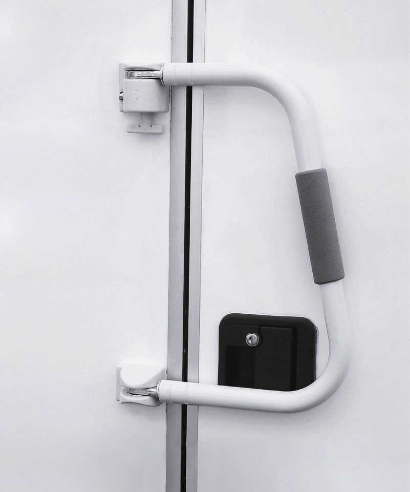 Zusätzliche Türsicherung. Einstiegshilfe für sicheres Ein- und Aussteigen. Hergestellt aus solidem eloxiertem Aluminium Ø 30 mm. Über die Tür geklappt dient er als Diebstahlschutz und verhindert zufälliges Öffnen während der Fahrt. Passend für alle Türen links- und rechtsöffnend. Security 46 ist auch für zweiteilige Türen geeignet. Art Sicherheitszubehör: sonstiges Sicherheitszubehör, Material: Aluminium , Ausführung: 31 cm, Höhe: 31 cm, Farbe: weiß, Höhe: 31 cm