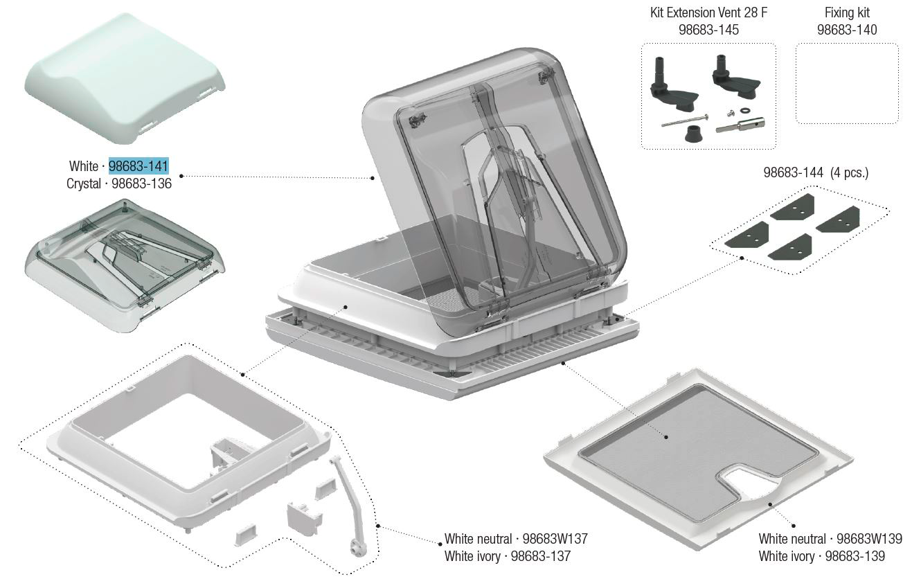 Fiamma Ersatzhaube passend für Dachhaube Vent 28 F – Farbe White Fiamma Ersatzteilnummer 98683-141 – Ersatzteile Fahrzeug