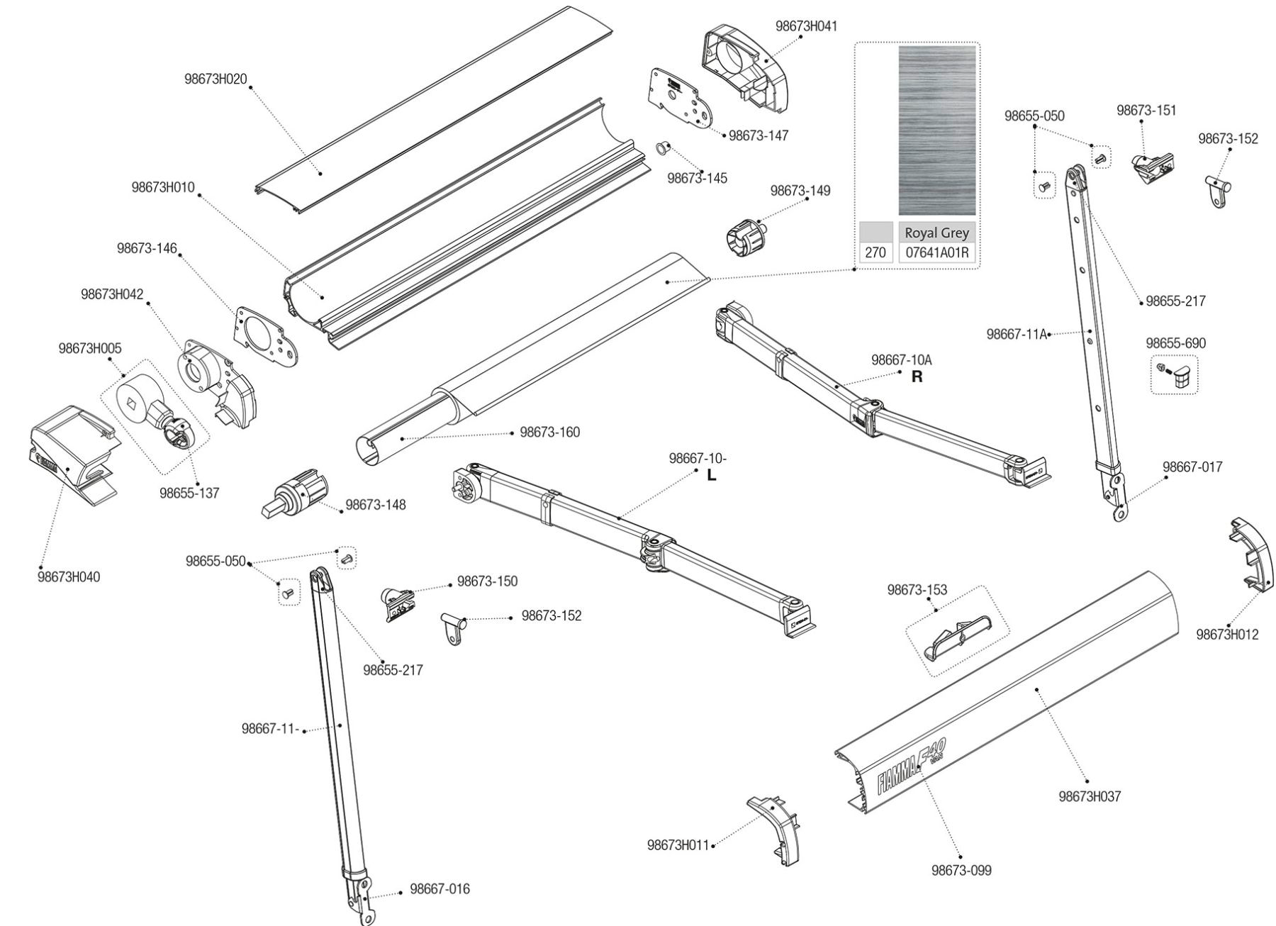Fiamma Gehäuse für Markisen: * F40van 270 07503H01R Fiamma Ersatzteilnummer: 98673H010