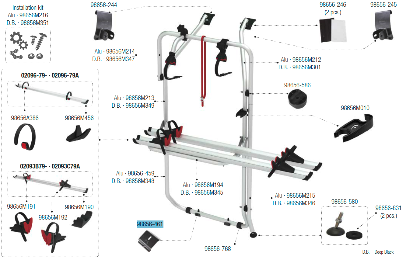 Fiamma Halterung unten passend für Carry Bike VW T5 D / T6 D – Fiamma Ersatzteilnummer 98656-461 – Ersatzteile Fahrzeug