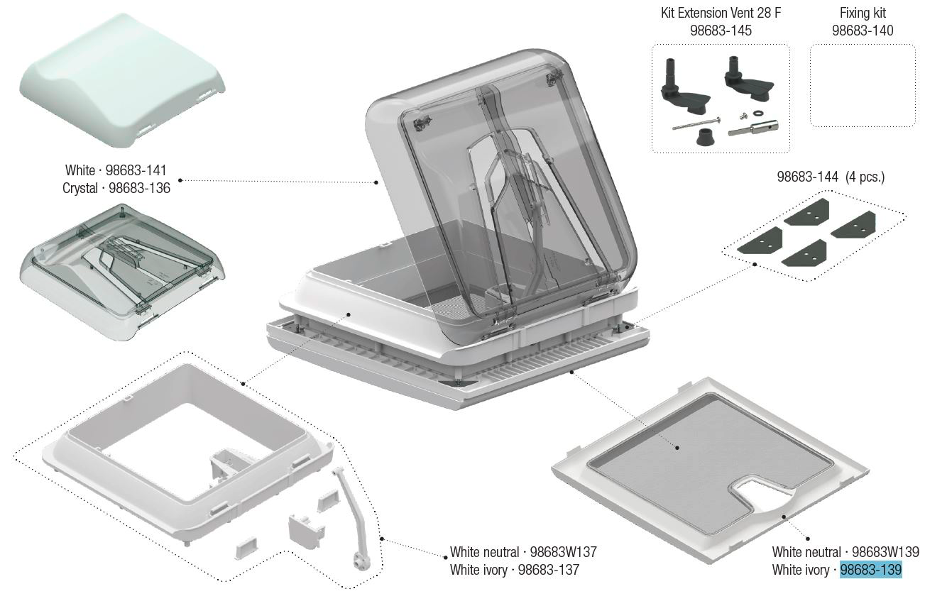 Fiamma Innenrahmen passend für Dachhaube Vent 28 F – Farbe White ivory Fiamma Ersatzteilnummer 98683-139 – Ersatzteile Fahrzeug