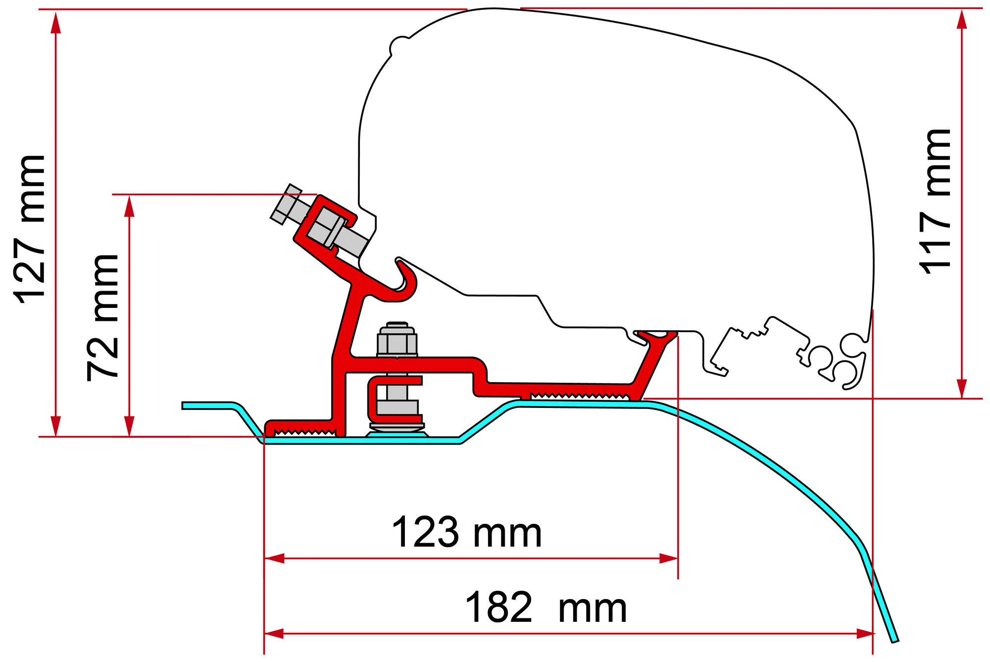 Fiamma Kit Fiat Ducato / Citroën Jumper / Peugeot Boxer – H2 L2/L3 ab 2006 Markisenadapter für Fiamma F80/F65 schwarz – Markisenadapter