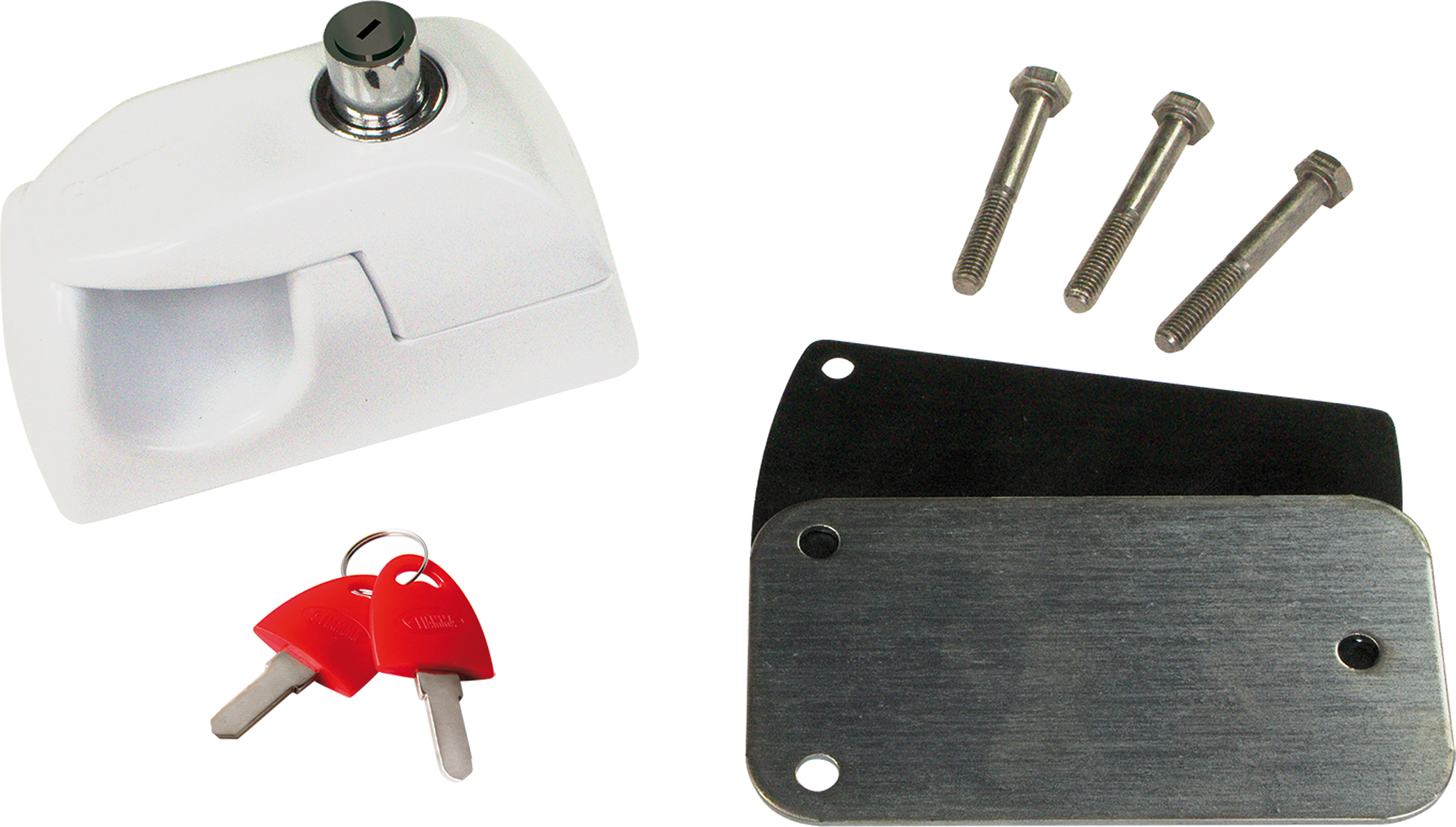 Bestehend aus einem zusätzlichem Sicherheitsschloß. Zum Nachrüsten der Security 31 und 46 durch die Montage auf der Einstiegstür. Komplett mit Schlüssel und innerer Gegenhalterung. Material: Aluminium, Farbe: weiß