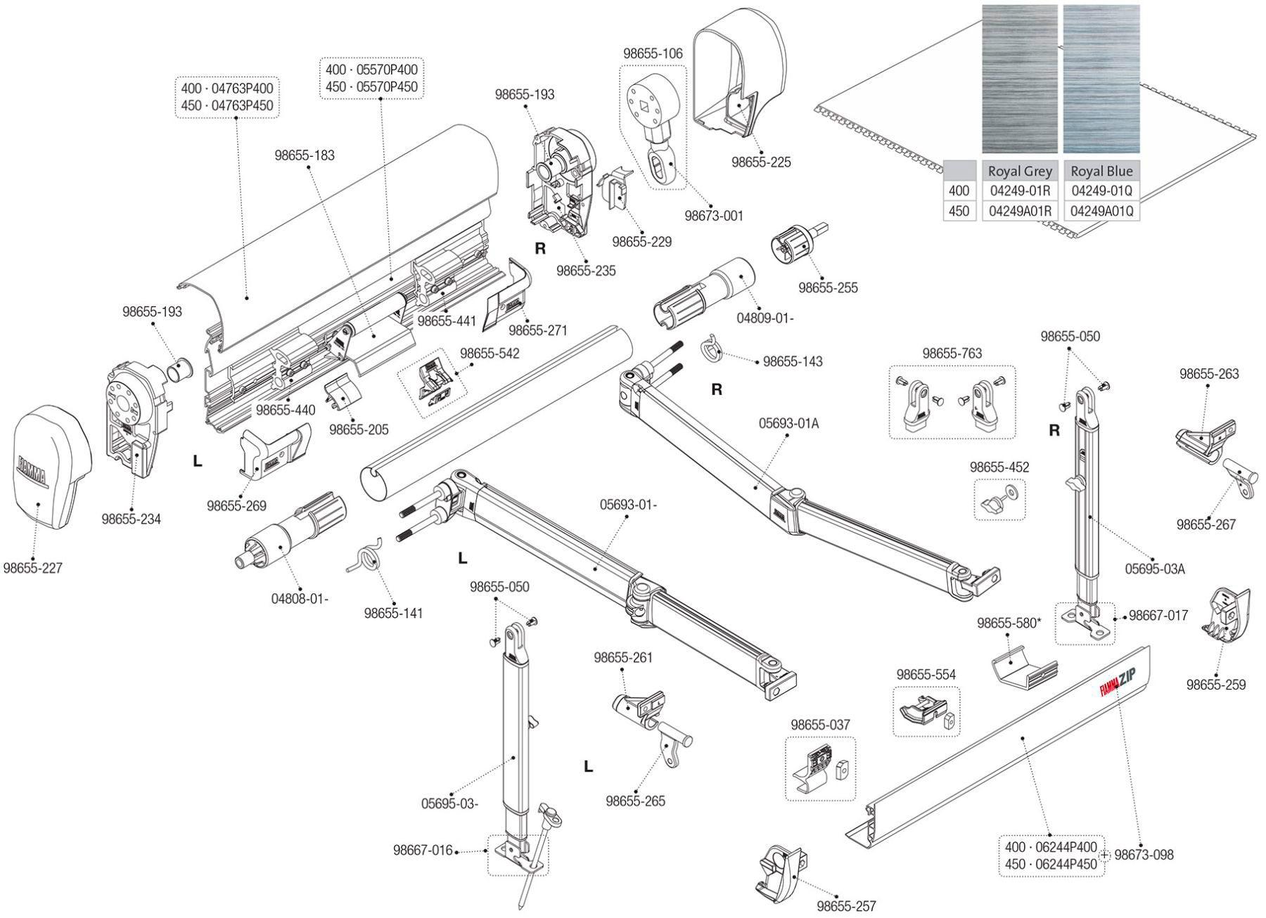 Fiamma linke Rollenabdeckung für Markise ZIP F45Ti L 400 – 450 – Fiamma Ersatzteilnummer 04808-01- – Ersatzteile Zelte & Markisen