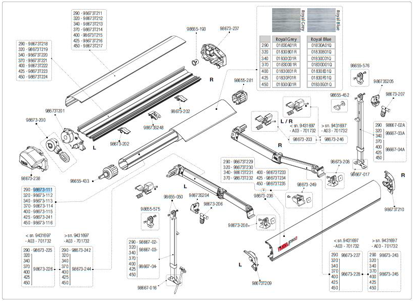 Fiamma Markisenwalze für Markise F80s / F65s 340 – Fiamma Ersatzteilnummer 98673-113 – Ersatzteile Zelte & Markisen