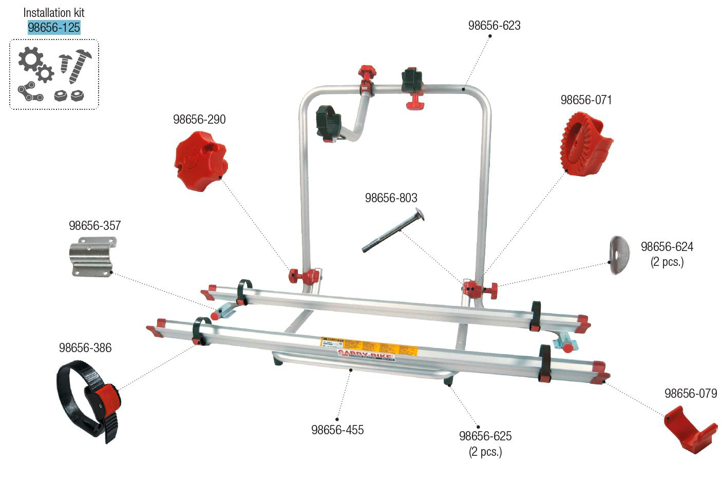 Fiamma Montagesatz passend für Carry Bike Garage Plus – Fiamma Ersatzteilnummer 98656-125 – Ersatzteile Fahrzeug