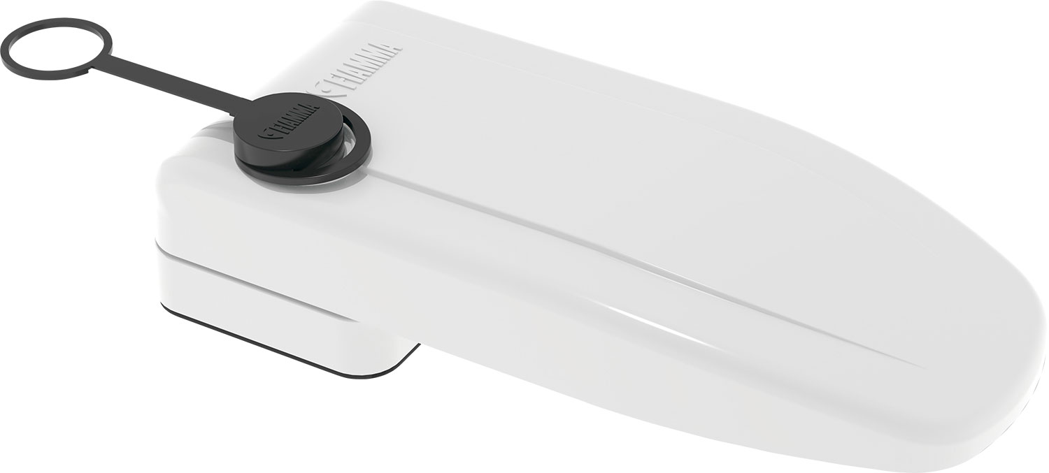 Sicherheitsschloss mit einer Gesamtlänge von 20 cm, um auch das Schloss der Reisemobiltüre abzudecken. Anbringung an der Wand mit vier durchgehenden Schrauben und innerer Gegenplatte. Farbe: weiß, Gewicht: 0,6 kg, Maße (LxBxH): 20 x 9,5 x 5 cm