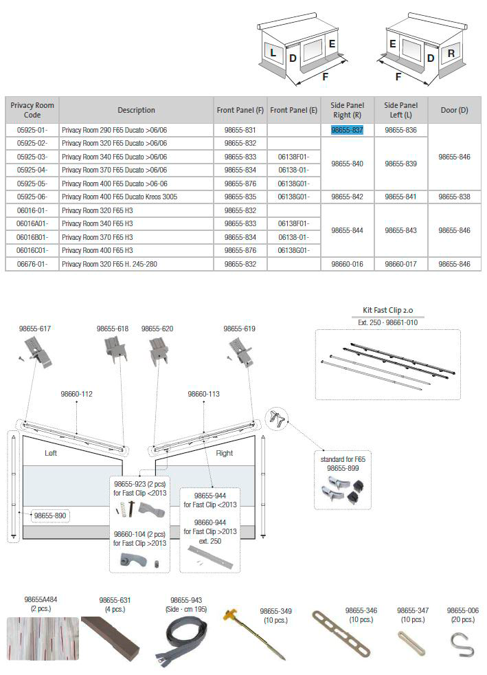 Fiamma Seitenwand rechts (Side Panel Right R) für Markisen: * Privacy Room F65 bis 2015: Privacy Room 290 F65 Ducato >06/06 Fiamma Ersatzteilnummer: 98655-837 für Markisentyp : Fiamma F65