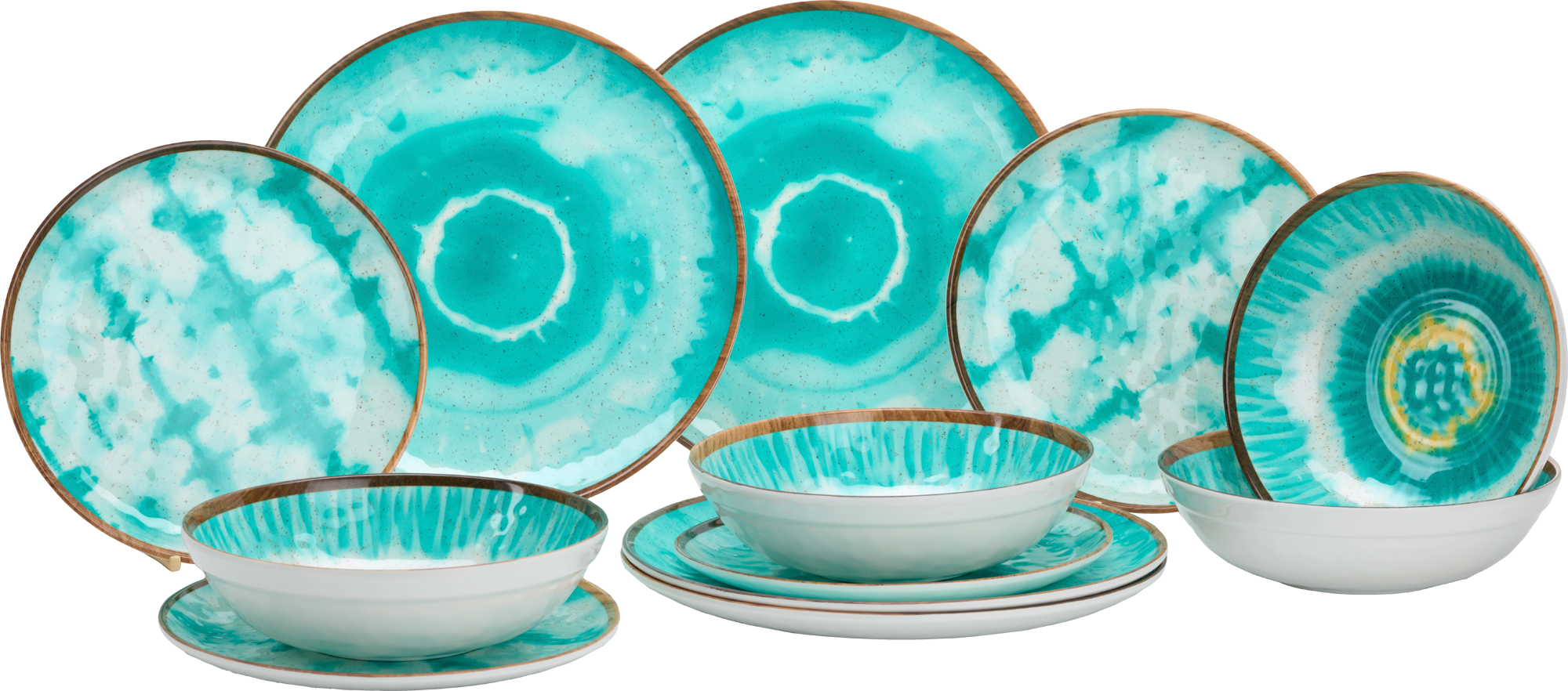Geschirrset Boho Dream für vier Personen in schickem Design und angenehmer Haptik. Das Set hat einen Anti-Slip Untergrund für einen sicheren Halt. Geringes Gewicht und hochwertige Verarbeitung. Lebensmittelecht, spülmaschinengeeignet und bruchunempfindlich. Farbe: Blau, Material: Melamin