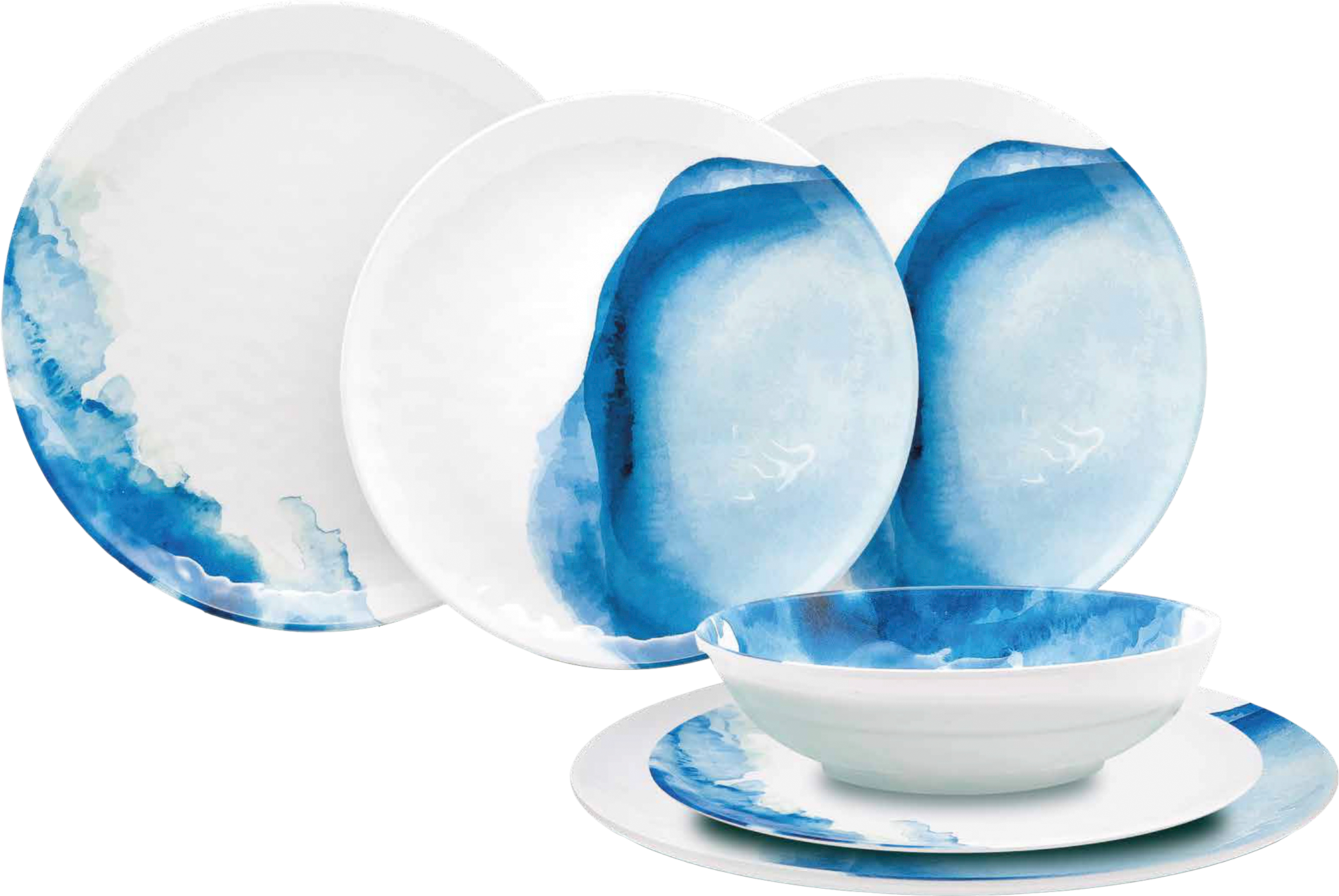 Flamefield Deep Sea Geschirr-Set 12-tlg. für 4 Personen – Kunststoff und Melamin Geschirr-Sets