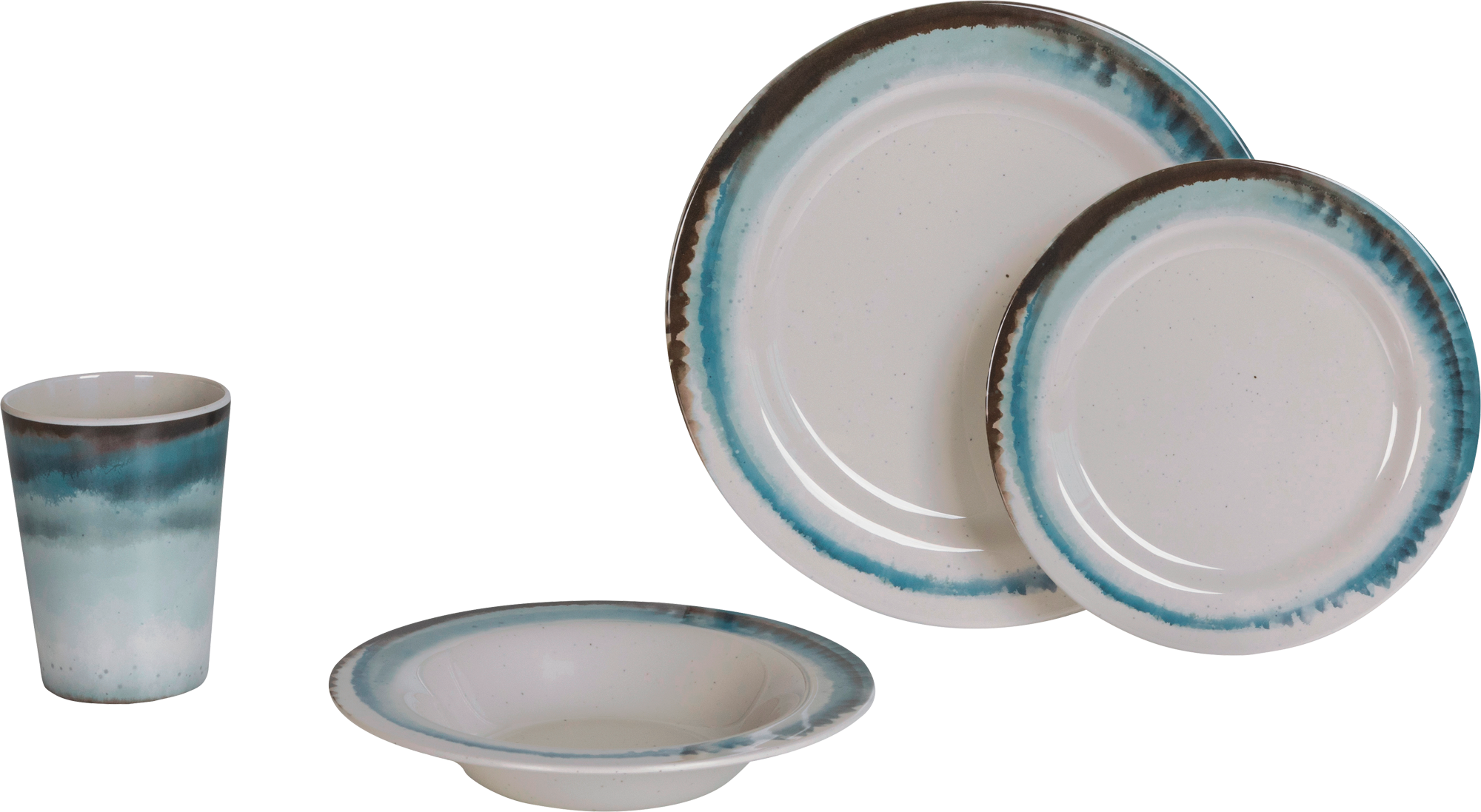 Flamefield Exklusiv Nordlight Melamin Geschirr-Set Anti-Slip 16-tlg. für 4 Personen – Kunststoff und Melamin Geschirr-Sets