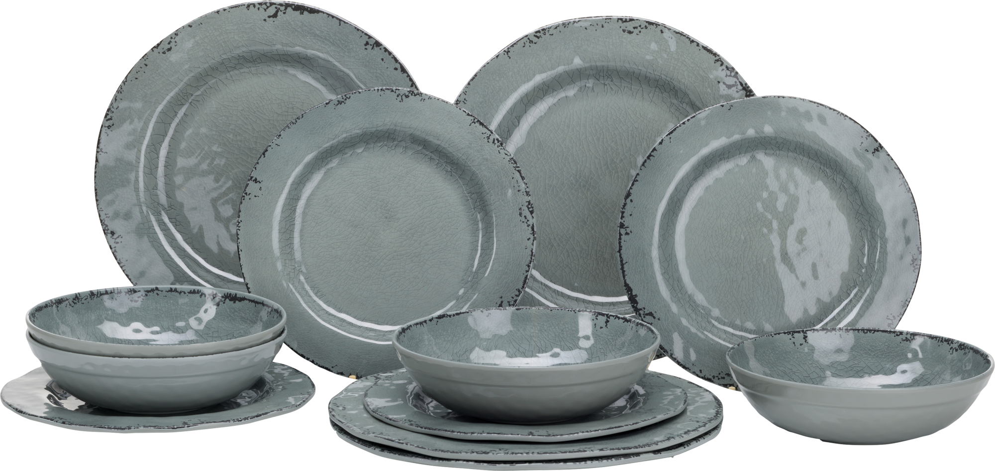 Flamefield Geschirrset Melamin 12-teilig Moondust – Kunststoff und Melamin Geschirr-Sets