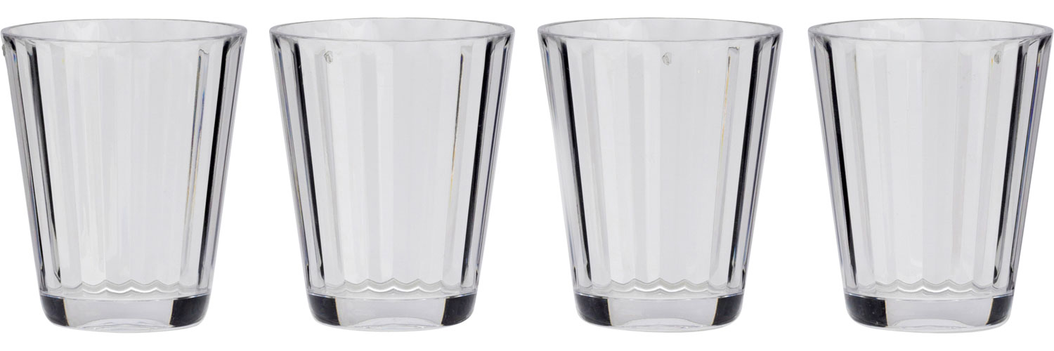 Verwandeln Sie den Campingtisch in eine Tafel! Mit dem 4-teiligen Gläserset Royal im edlen Design. Durch die länglichen Rillen sind die SAN-Gläser optisch dem echten Glas zum verwechseln ähnlich und liegen gut in der Hand – darüber hinaus sind sie bruchsicher und leicht im Gewicht. Anzahl: 4: 4 tlg, Art Trinkgläser: Trinkgläser, Farbe: klar, geriffelt, Volumen: 250 ml, Material: SAN (Styrol-Acrylnitril)