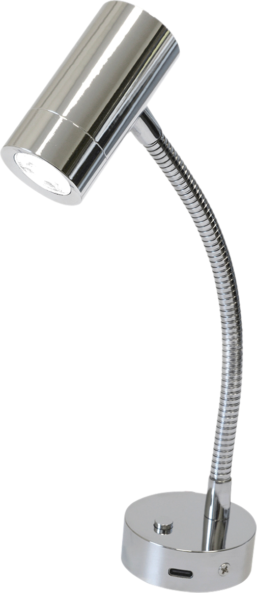 Aufbauspot Mini Tube D4 Flex – Funktionalität und Stil Der Mini Tube D4 Flex ist ein hochwertiger Aufbauspot, der Eleganz und Funktionalität vereint. Aus lackiertem Aluminium in satin-schwarzer Ausführung gefertigt, fügt er sich nahtlos in jedes moderne Interieur ein. Der flexible 180 mm Schwanenhals ermöglicht eine präzise Ausrichtung des Lichts, ideal für gezielte Beleuchtung. Ausgestattet mit einer 12V Power-LED (1,5W), erzeugt der Spot mit 3000K eine warme, angenehme Lichtfarbe bei einer Helligkeit von 120 Lumen. Ein integrierter Schalter und ein praktischer USB-C-Ladeanschluss (5V, 2A) machen ihn besonders vielseitig und benutzerfreundlich. Details * Elegantes Design: Lackiertes Aluminium in satin-schwarz für eine stilvolle Optik. * Flexibilität: Schwanenhals mit 180 mm für einfaches Ausrichten des Lichts. * Effiziente Beleuchtung: 1,5W LED mit 3000K Lichtfarbe für warmweißes Licht und 120 Lumen Helligkeit. * Zusätzlicher Komfort: Mit integriertem Schalter und USB-C-Ladeanschluss (5V, 2A) für vielseitige Anwendungen. Technische Daten * Material: Aluminium, lackiert * Farbe: Satin schwarz * Schwanenhals: 180 mm flexibel * Leuchtmittel: 12V Power-LED, 1,5W * Lichtfarbe: Warmweiß, 3000K * Helligkeit: 120 Lumen * Stromversorgung: 12V * Zusatzfunktionen: USB-C-Ladeanschluss (5V, 2A) * Integrierter Schalter Lieferumfang * 1 x Mini Tube D4 Flex Aufbauspot Art Leuchten elektrisch: Sonstige Leuchten, Farbe: verchromt
