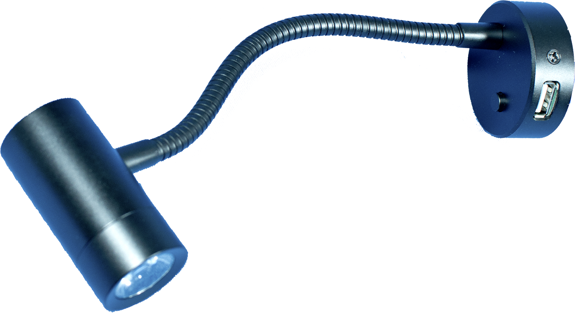 Mini Tube D4, Flex, Schalter, USB P-LED, satin-schwarz oder chrom Durchmesser: 30 mm, Lebensdauer: 30000 Std, Leistung (W): 1,5 W, Lichtstrom: 100 lm, Spannung: 12 V, Farbe: Chrom, Maße (BxH): 50 x 210 mm