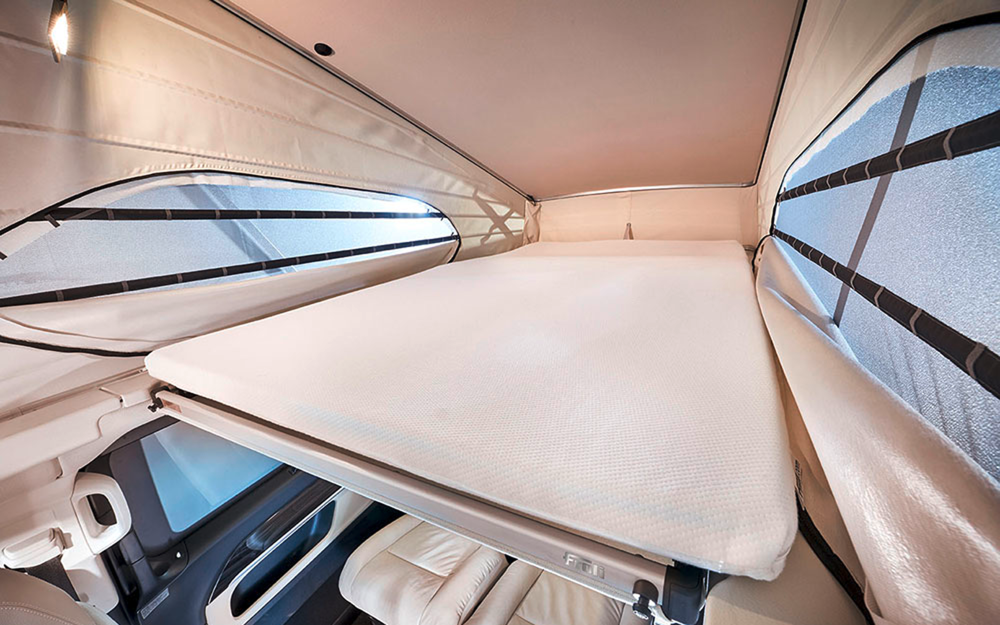 Die Froli Dachbett-Matratze in 2 Härtegraden! Die eigens für Marco Polo Reisemobile (ab Baujahr 02/2017, nur in Verbindung mit der bauseits vorhandenen Froli-Unterfederung) entwickelte Froli Dachbett-Matratze sorgt dank individueller Stützkraft für Schlaf mit Wohlfühleffekt und ist perfekt abgestimmt auf die Froli-Unterfederung. Zwei Härtegrade stehen zur Auswahl: H2 (mittel) oder H3 (fest). Stabile Laschen befestigen die Matratze an der Unterfederung (ab Baujahr 02/2017, nur in Verbindung mit der bauseits vorhandenen Froli-Unterfederung). Für optimale Unterlüftung und Trockenheit sorgt der hochwertige atmungsaktive Bezug: antiallergen, antibakteriell, STANDARD 100 by OEKO-TEX. Der Bezug ist abnehmbar (Reißverschluss) und bei 60° waschbar. Die praktische Tasche ist abnehmbar und kann beliebig positioniert werden. Dank der cleveren Konstruktion lässt sich die Matratze problemlos mit einem Spannbettlaken beziehen. Sie können auch mit der Dachmatratze wie gewohnt das Dach schließen. Platzsparender, umweltbewusster Versand; die Matratze wird aufgerollt und komprimiert versandt; sie erreicht nach dem Öffnen innerhalb von 24 Stunden ihre volle Höhe. Technische Daten: * Raumgewicht: ca. 40 – 43 kg/m3* * Stauchhärte: 3.9 – 4.4. kPa * Das Raumgewicht einer Matratze ist ein Qualitätsmerkmal. Je höher das Raumgewicht, desto höher ist die Festigkeit und Formbeständigkeit zur Körperunterstützung. Gewicht: 6,5 kg, Material: Oberseite: Bezugsstoff, unversteppt; Unterseite: Atmungsaktives Air-Mesh-Gewebe, weiß, Maße (LxB): 200 x 110 cm, Härtegrad: 3, Matratzenhöhe: 5,5 cm