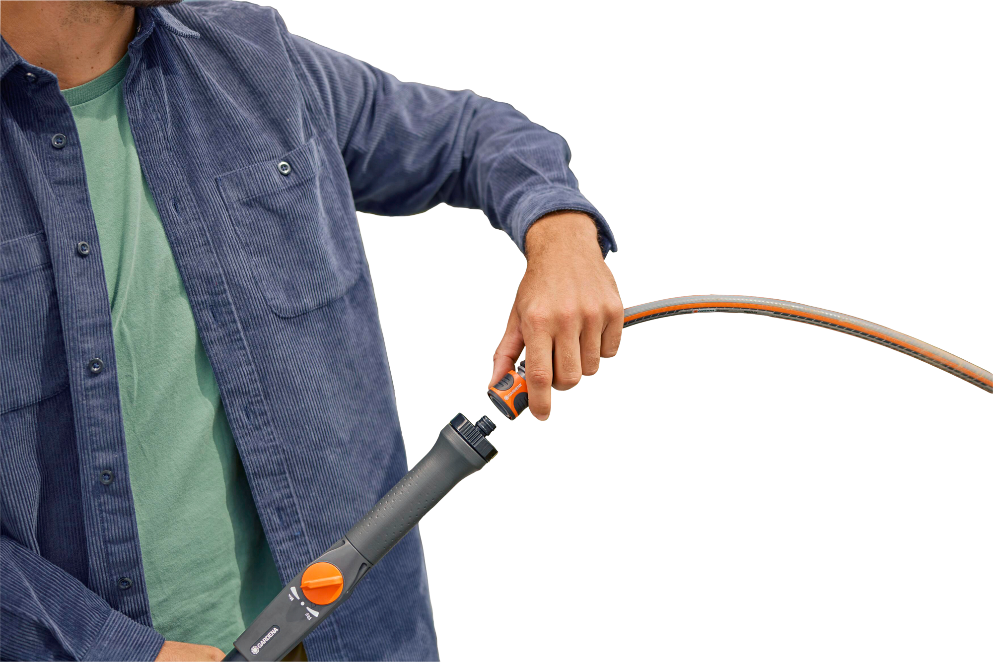 Der GARDENA Cleansystem Teleskop-Stiel M – XL eignet sich für die Nassreinigung in schwer erreichbaren Höhen. Der wasserführende Stiel erleichtert die Nassreinigung höher gelegener Flächen, z. B. Fenster Für noch bequemeres Arbeiten an hohen oder schwer zugänglichen Stellen bietet sich der wasserführende Stiel an. Er wird über die Original GARDENA System Steckverbindung einfach an den Gartenschlauch angeschlossen. Damit kommt das Wasser über den Stiel direkt zur Bürste, wo es benötigt wird. Das ermöglicht eine effektive Reinigung, bei der auf die Verwendung von Wasser aus einem Eimer verzichtet werden kann. Mehr Reichweite beim Saubermachen Der GARDENA Teleskop-Stiel M – XL erweitert den Aktionsradius beim Putzen mit einer einstellbaren Länge von 155-260 cm. Der Stiel ermöglicht so den Zugang zu höher gelegenen und schwer zugänglichen Stellen ohne die Verwendung weiterer Hilfsmittel wie z. B. einer Leiter. Zum komfortablen Arbeiten ist der Stiel aus hochwertigem, stabilem Aluminium und mit einer Ummantelung versehen, sodass sich die Oberfläche auch bei niedrigen Außentemperaturen nicht kalt anfühlt. Wassermengenregulierung für gründliche Sauberkeit Nach Anschluss an den Gartenschlauch mit nur einem Handgriff kann die Wasserzufuhr am Griff stufenlos reguliert und abgesperrt werden. Dadurch fällt der lästige Gang zum Wasserhahn während der Anwendung weg. Effizientere Reinigung durch Reinigungstabs Für eine noch gründlichere Reinigung sorgen das GARDENA Shampoo, die einfach in den Spender am Stiel eingesetzt werden. Diese lassen sich je nach Bedarf dosieren und bieten somit eine effiziente Reinigung der Oberflächen. Kompatibel mit Cleansystem Stielbürsten Der Stiel kann durch die Original GARDENA Systemverbindung ganz einfach an den Gartenschlauch geklickt werden. Alle GARDENA Cleansystem Stielbürsten sind kompatibel und lassen sich problemlos aufschrauben. Das Qualitätsprodukt ist Made in Germany. GARDENA bietet auf das Produkt nach Registrierung unter: gardena.com/registration innerhalb von 3 Monaten nach Kauf eine 5-jährige Garantie. Garantiebedingungen unter gardena.com/warranty. Art Pflege/Reinigung: Bürste/Tuch, Ausführung: M-XL, Farbe: Schwarz