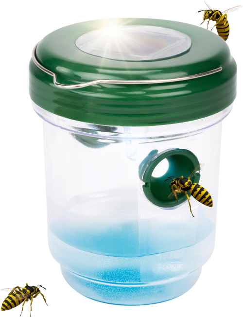 Solar-Insektenfalle – Effektiver Schutz bei Wespen- und Mückenproblemen Die Solar-Insektenfalle bietet dir zuverlässigen Schutz vor Wespen am Tag und Mücken in der Nacht – ganz ohne Stromanschluss oder Chemie. Tagsüber lockt ein süßlicher Essig-Zucker-Mix Wespen an, während ein integriertes LED-Licht bei Dunkelheit Mücken anzieht. Dank Solarbetrieb schaltet die Falle bei Dämmerung automatisch in den Nachtmodus. Du kannst sie flexibel aufstellen oder aufhängen und so ungestört die Zeit im Freien genießen. Details * Effektive Wespenabwehr mit Essig-Zucker-Spülmittel-Mix * Integrierte blaue LED zieht Mücken bei Dämmerung an * Zum Hinstellen oder Aufhängen geeignet * Mehrsprachige Anleitung (inklusive osteuropäischer Sprachen) Technische Daten * Produktmaße: 9,3 × 11,7 × 9,3 cm (Breite × Höhe × Tiefe) * Verpackungsmaße: 10 × 12,5 × 10 cm (Breite × Höhe × Tiefe) * Stromversorgung: Solarzelle mit Tageslichtsensor * Verpackungseinheit: 48 Stück pro Karton * Material: Kunststoff, Solarpanel (polykristallin), LED (lichtemittierende Diode) Lieferumfang * 1 Solar-Insektenfalle mit integrierter LED * Mehrsprachige Bedienungsanleitung Art Insektenschutz: Sonstiges, Farbe: grün