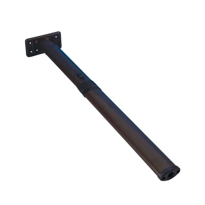 Gelenk-Stützfuß Für einseitig angehängte Tischplatten. Oval-Rohr (50 x 25 mm). Einrastbar in beiden Höhenstellungen, Rastautomatik mittels Schiebetaste. Abgeklappte Höhe 31,5 cm. Art Tischgestelle: Zubehör, Material: Aluminium, Farbe: braun, Höhe: 67,5 cm