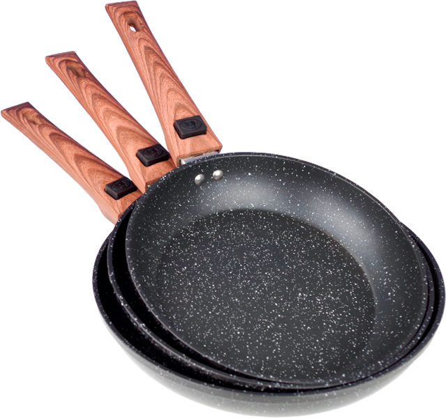 Gimex Black Line Holzdekor Pfannenset 3 teilig – Camping Pfannen & Woks
