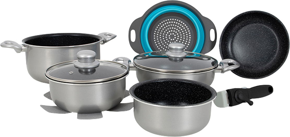 Gimex Topfset Aluminium Induktion silber 9-tlg. – Kochgeschirr-Sets